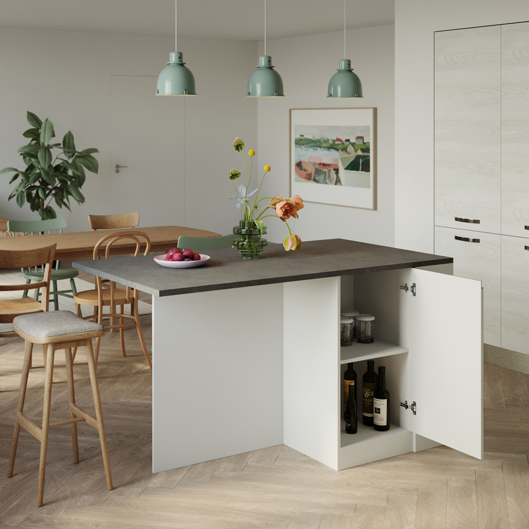 Ilot de cuisine moderne 155 cm blanc brillant/béton Solena | ![]() | Longueur: 155 cm Hauteur: 90 cm Profondeur: 90 cm | En stock 48 à 72h | 404 € 99 |