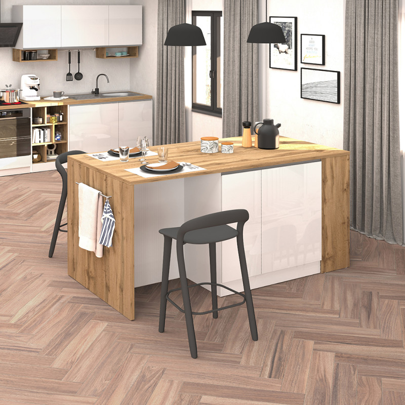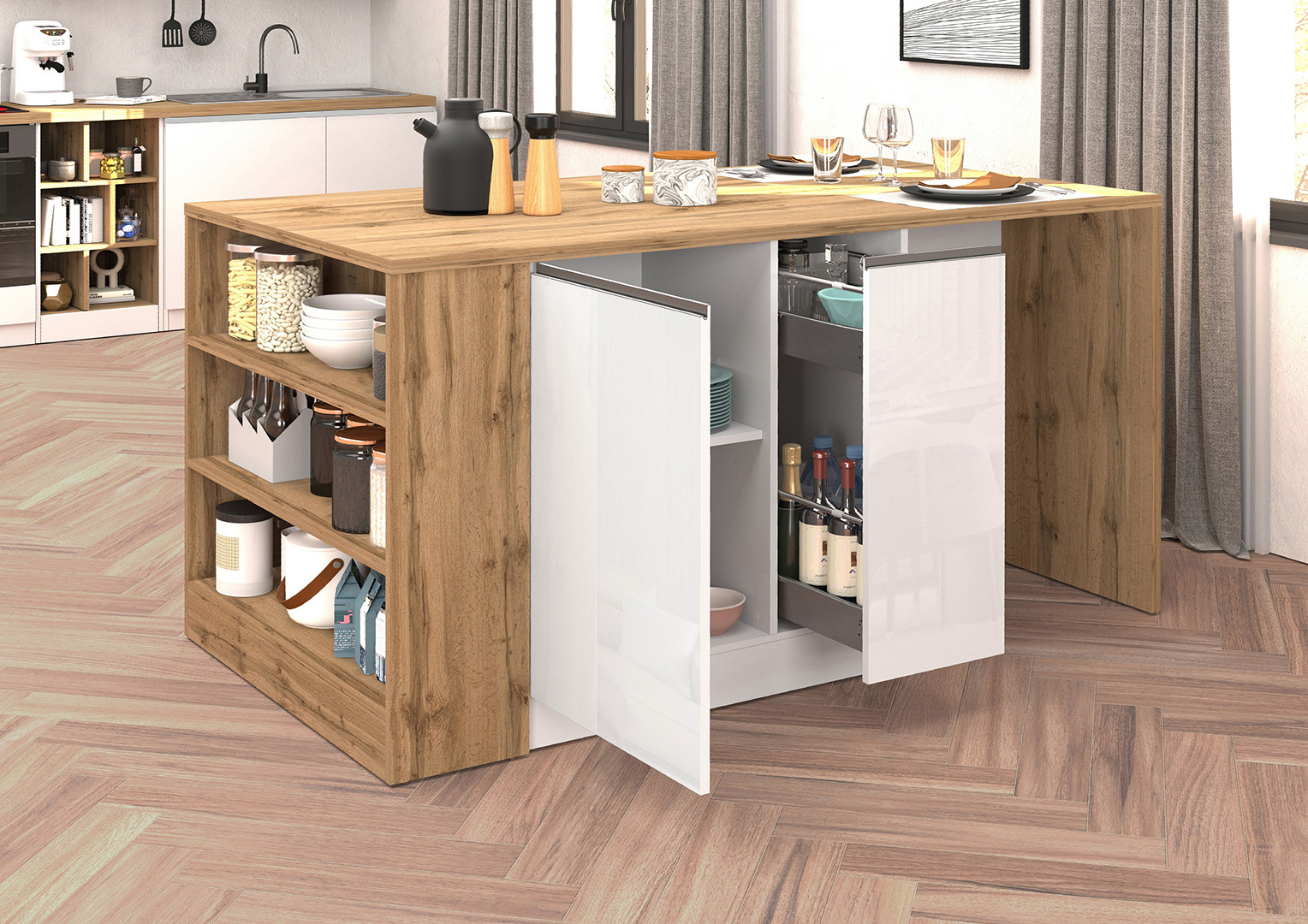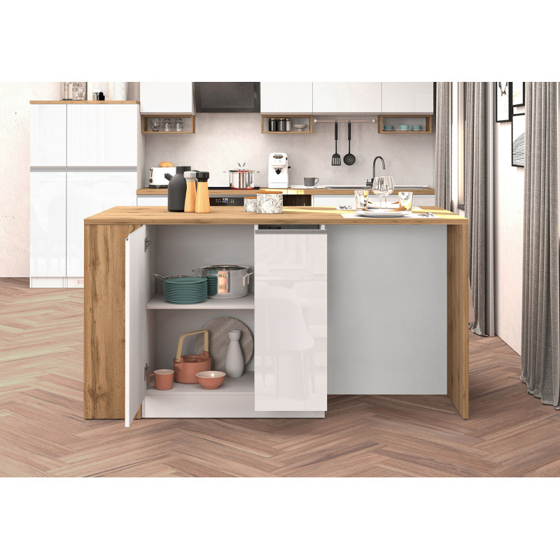 | Îlot de cuisine moderne 153 cm blanc brillant/chêne wotan Solena | | Longueur: 153 cm Hauteur: 90 cm Profondeur: 90 cm | En stock 48 à 72h | 795 € 00 | ||
