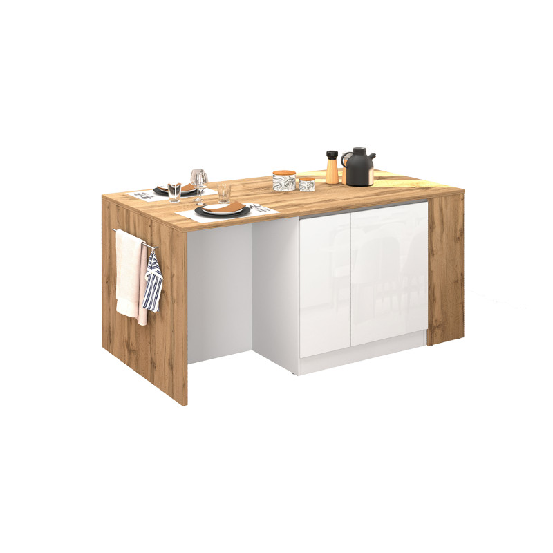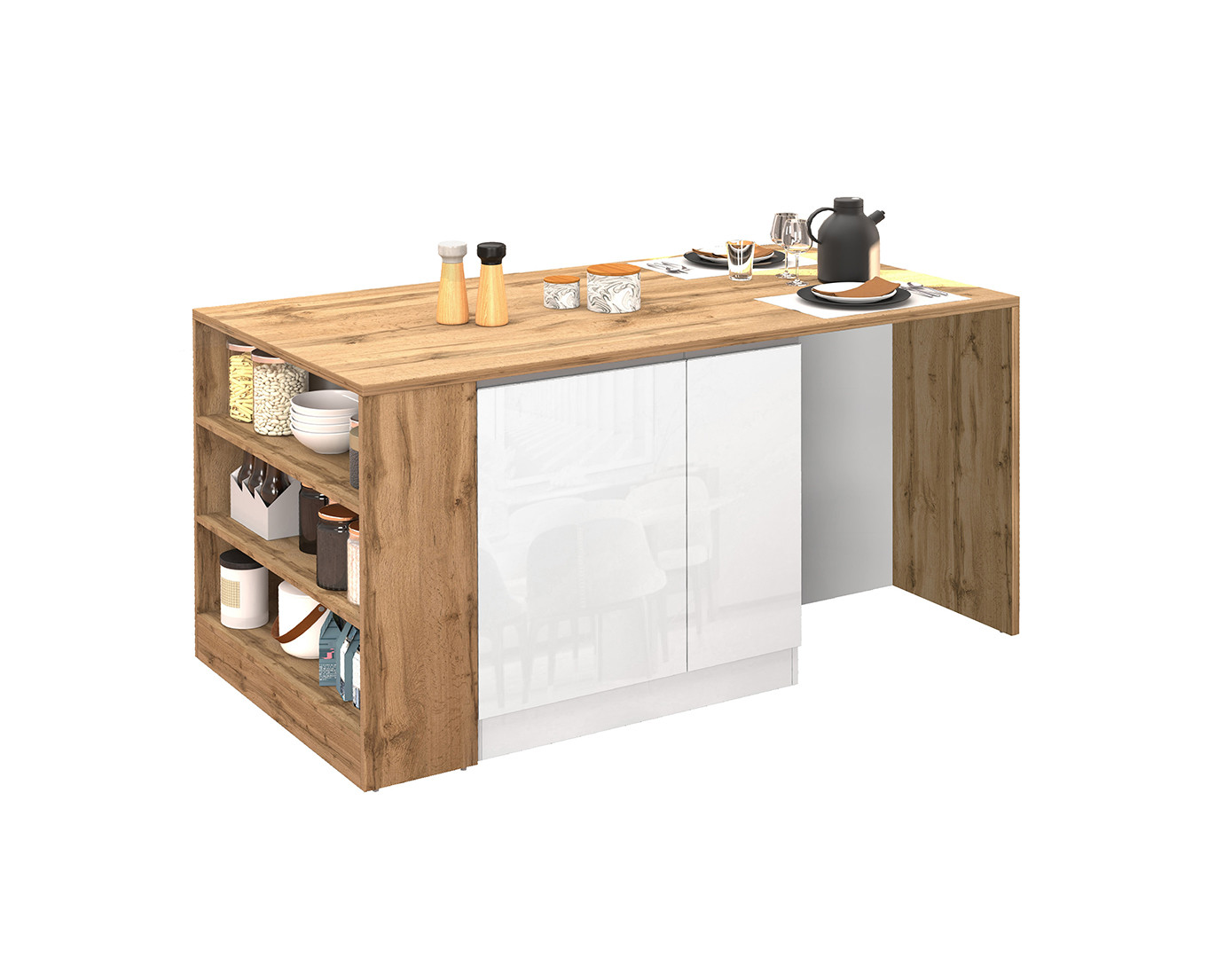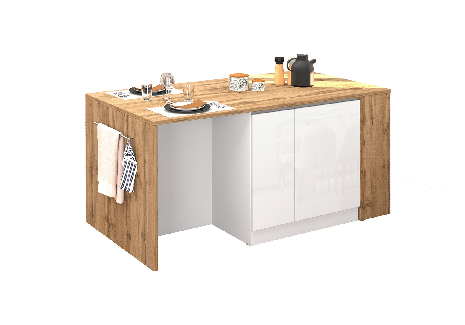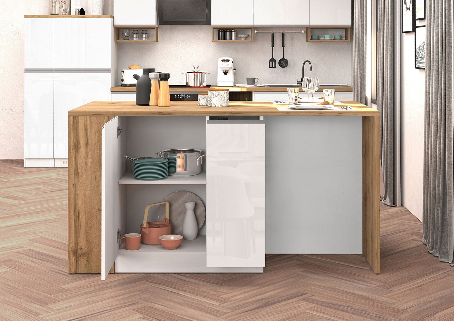 | Îlot de cuisine moderne 2 portes blanc brillant/chêne wotan Solena | | Longueur: 160 cm Hauteur: 90 cm Profondeur: 90 cm | En stock 48 à 72h | 525 € 00 | ||