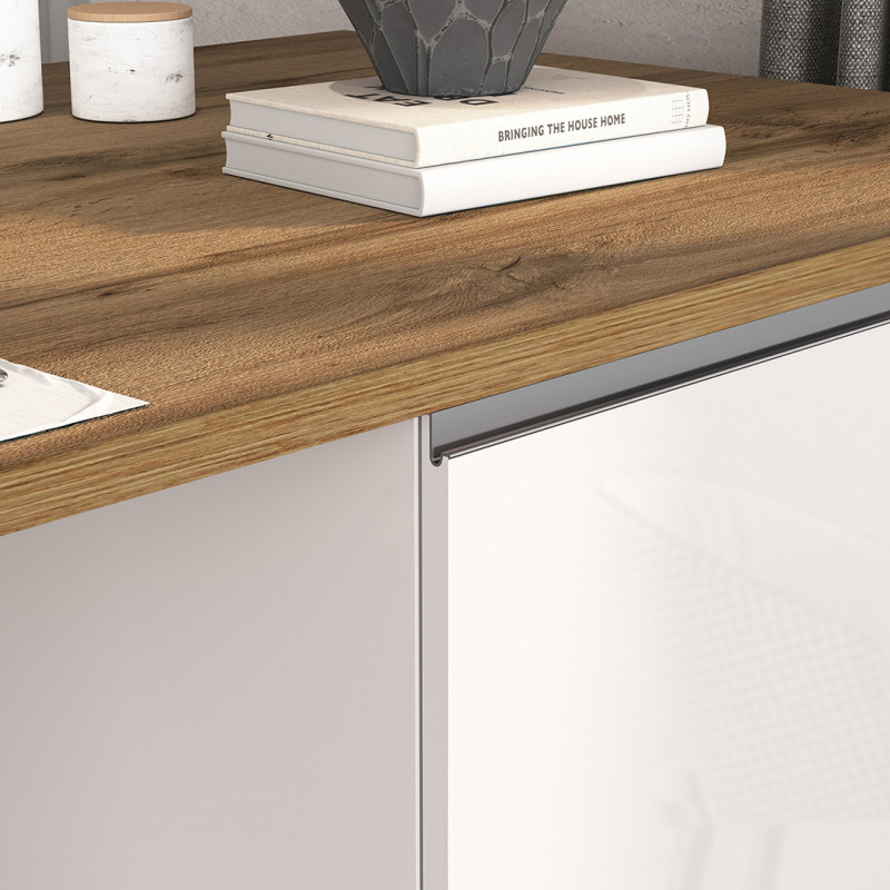 | Structure | Panneaux de particules mélaminés de première qualité 16 et 25 mm - façades blanc brillant - corps blanc mat - poignées en aluminium |