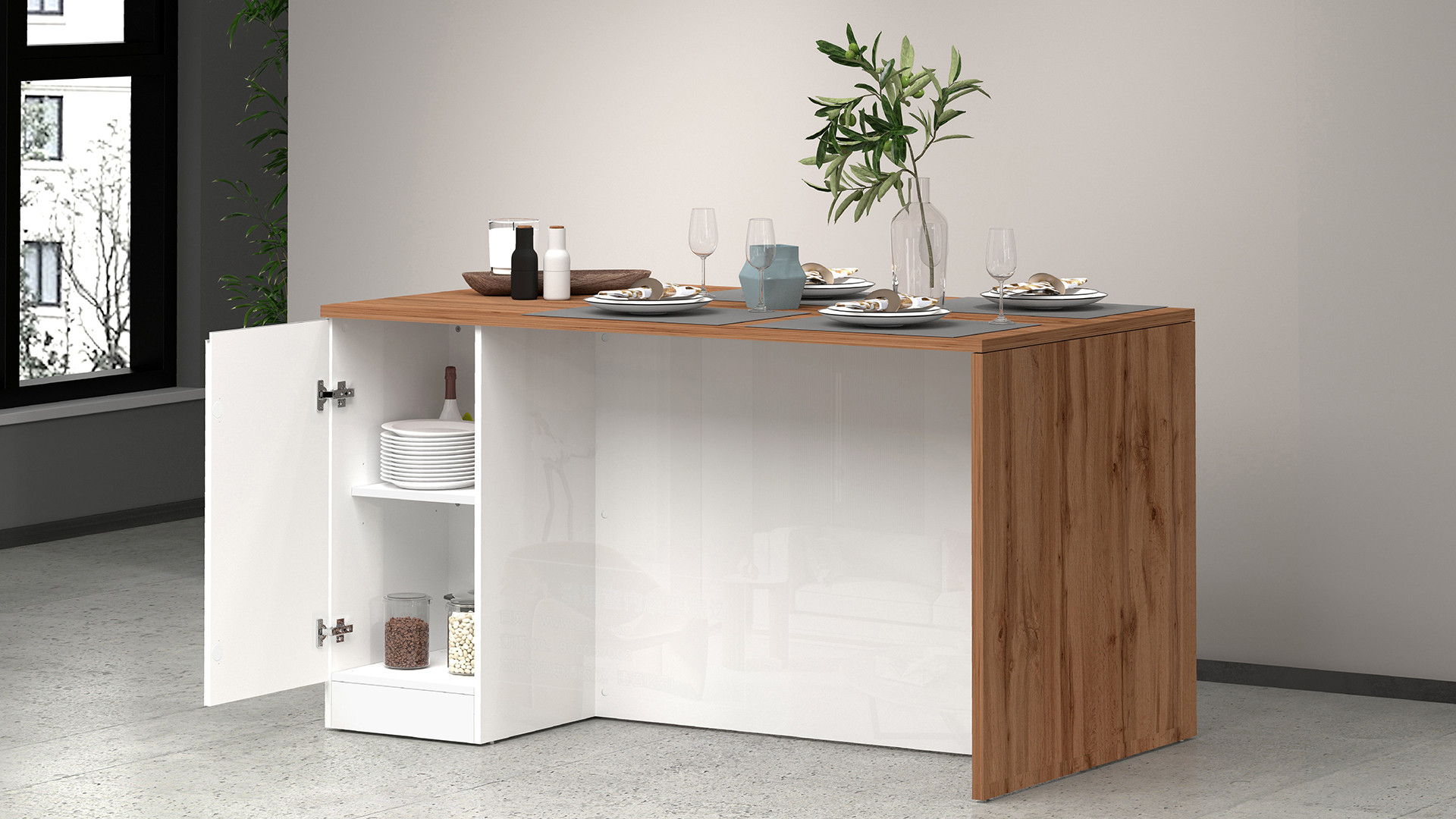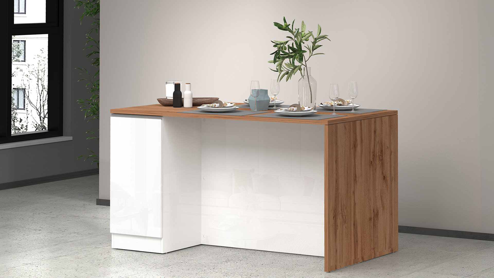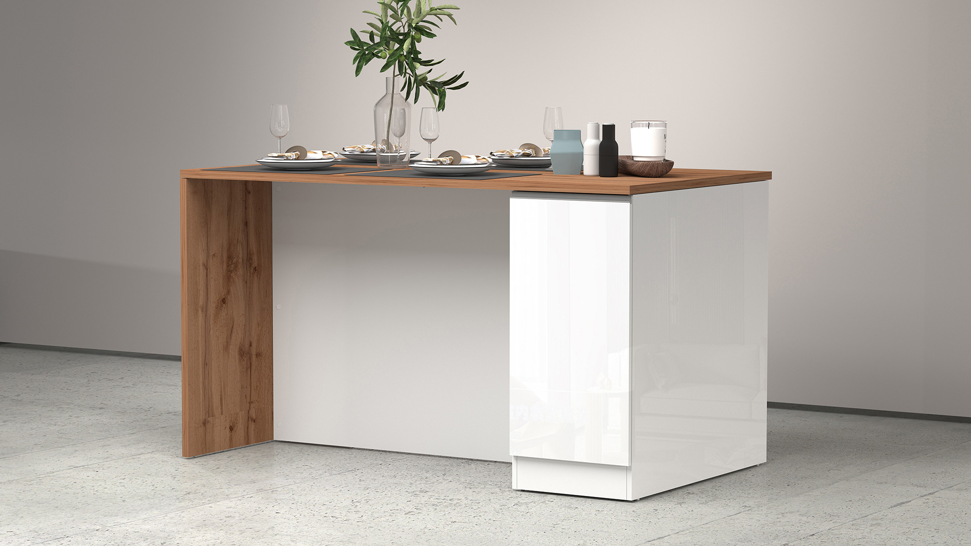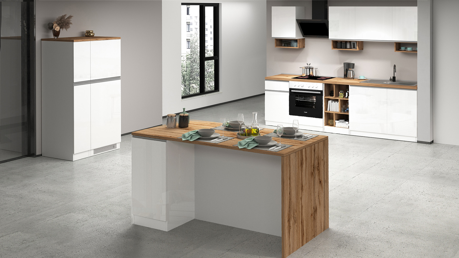 | Îlot de cuisine moderne 153 cm blanc brillant/chêne wotan Solena | | Longueur: 153 cm Hauteur: 90 cm Profondeur: 90 cm | En stock 48 à 72h | 795 € 00 | ||