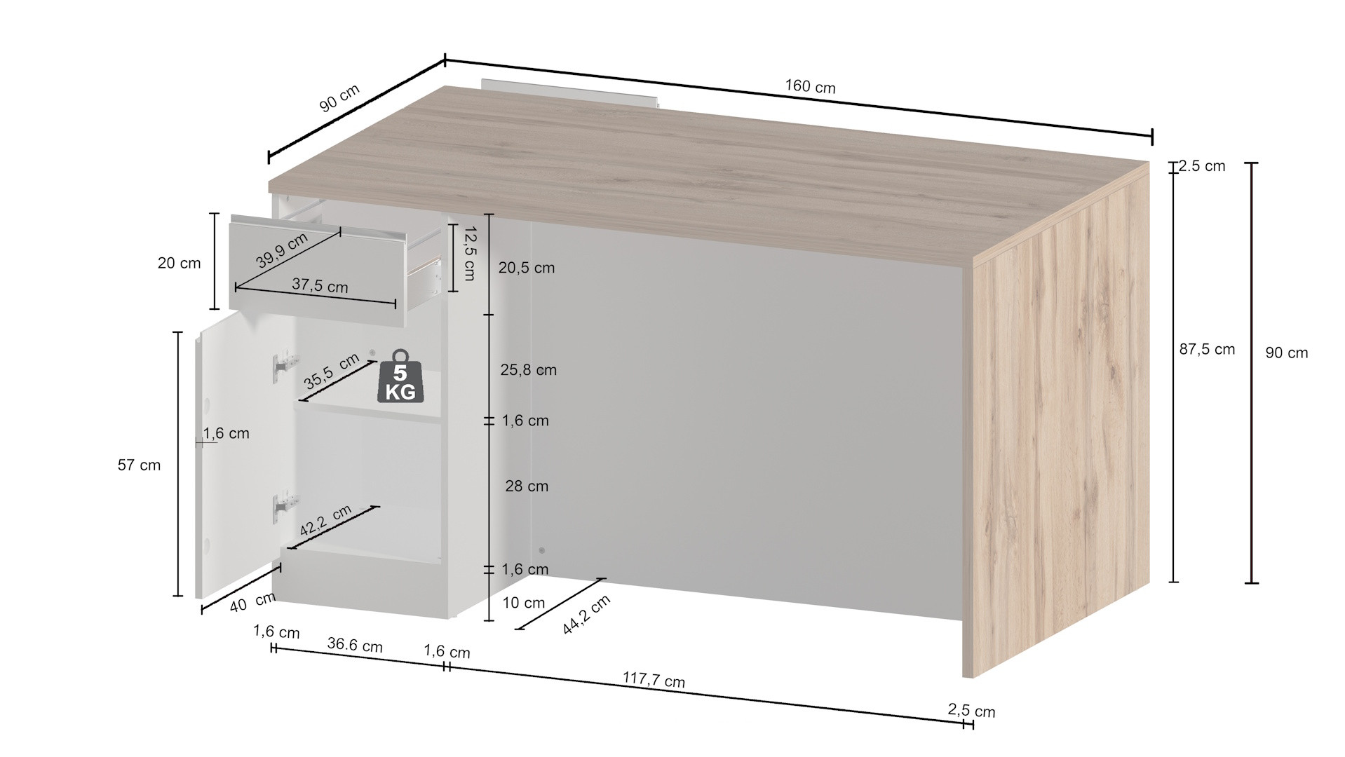 | Îlot de cuisine 2 portes 160 cm blanc brillant/chêne wotan Solena | | Longueur: 160 cm Hauteur: 90 cm Profondeur: 90 cm | En stock 48 à 72h | 615 € 00 |