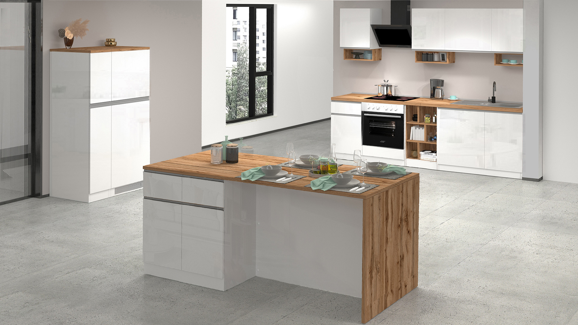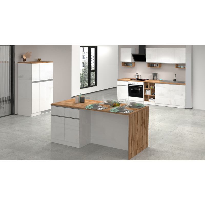 | Îlot de cuisine moderne 168 cm blanc brillant/chêne wotan Solena | | Longueur: 168 cm Hauteur: 90 cm Profondeur: 90 cm | En stock 48 à 72h | 925 € 00 | ||