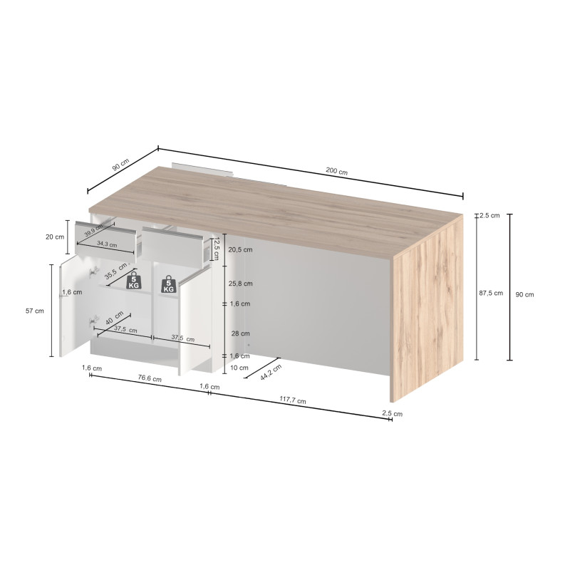 | Coloris | Blanc brillant/chêne wotan |