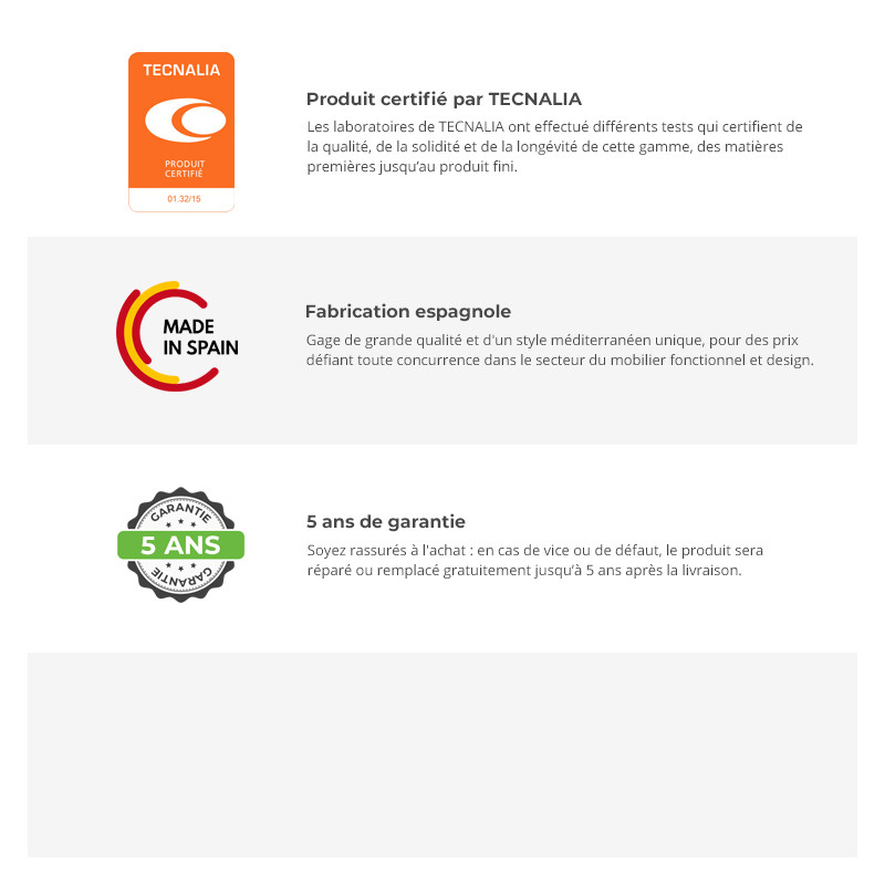 Les laboratoires de TECNALIA ont effectué différents tests qui certifient de la qualité, de la solidité et de la longévité de cette gamme, des matières premières jusqu’au produit fini.