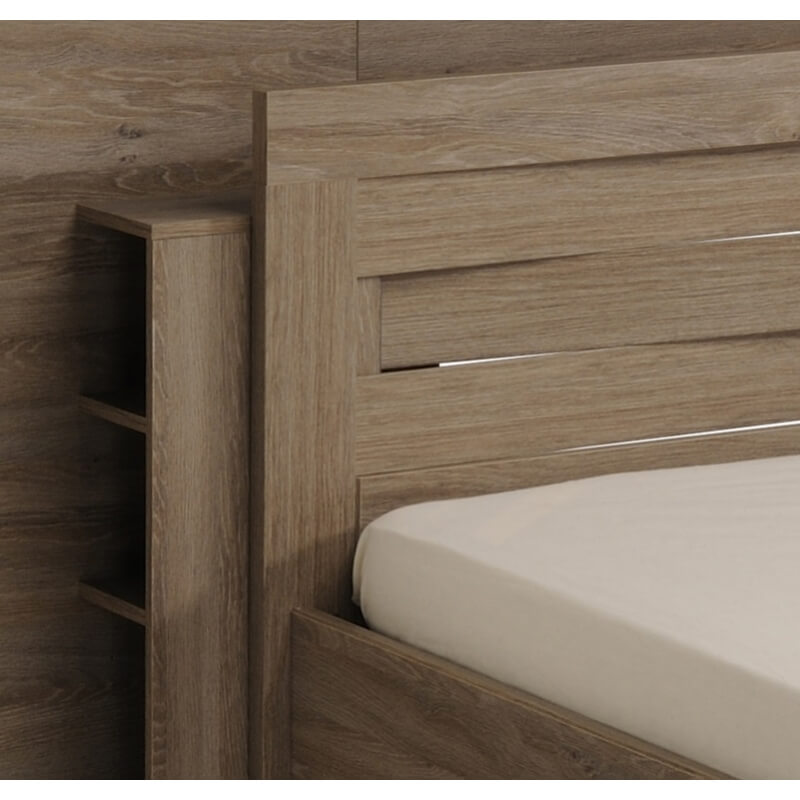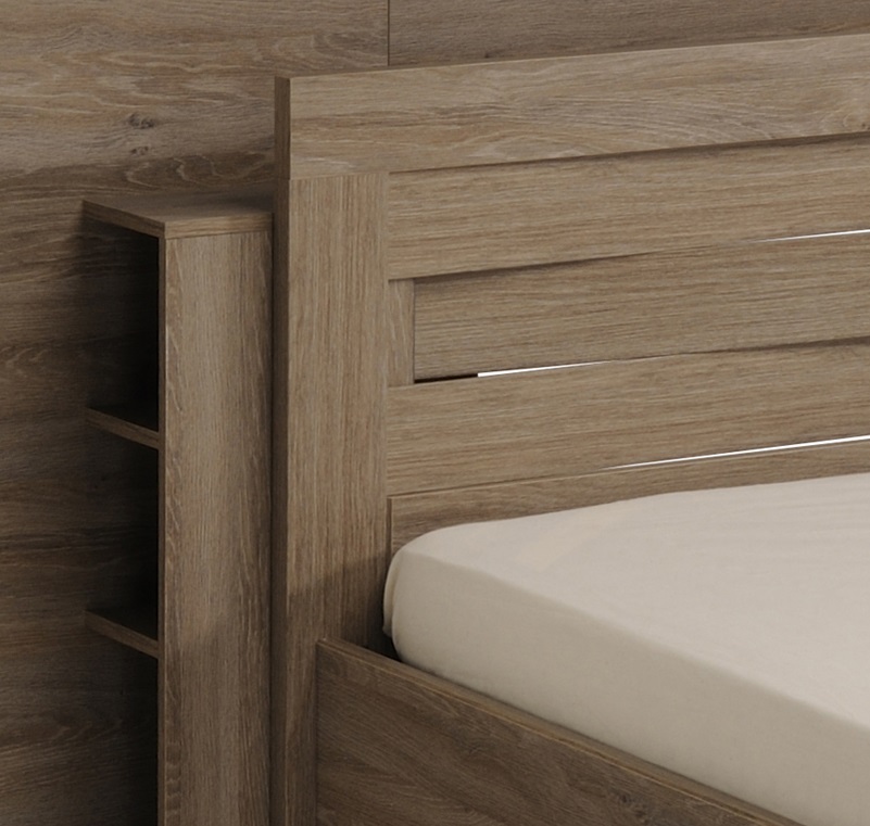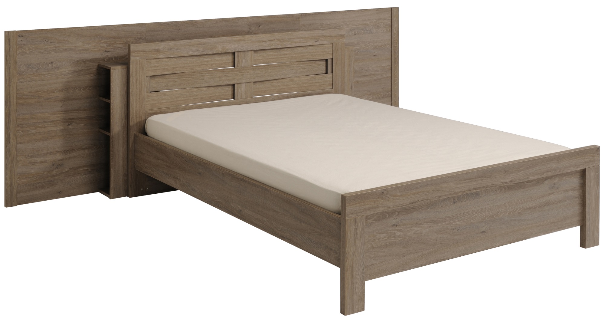 Le lit adulte contemporain Maori vous seduira par son coloris chaleureux et ses lignes parfaites. Sa structure est fabriquée en panneaux de particules de première qualité. Disponible en deux dimensions de couchage : 140 x 190 et 160 x 200 cm, il s'intègrera dans de nombreux intérieurs. Il dispose de 4 coins pour poser votre sommier. Son environnement vous offrira un espace de rangement appréciable tout en apportant une touche raffinée supplémentaire. Pour un ensemble harmonieux, optez également pour les autres éléments de la gamme Maori vendus séparément.