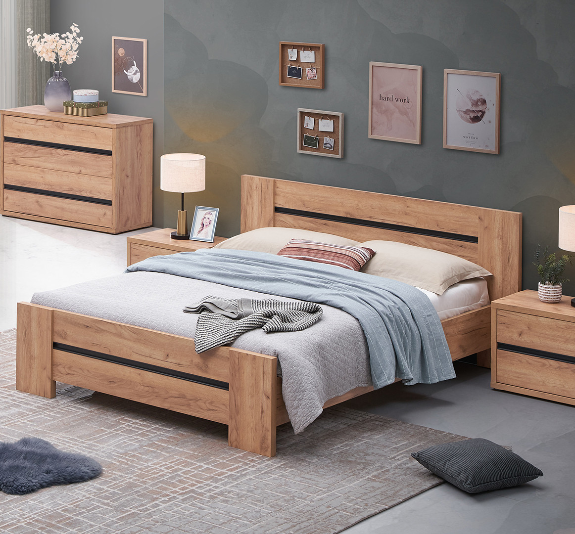 | Chambre adulte complète contemporaine chêne français Erwan | | Dimension de couchage: 140x200, 160x200 ou 180x200 cm | En stock 1 à 2 semaines | 1685 € 00 | ||