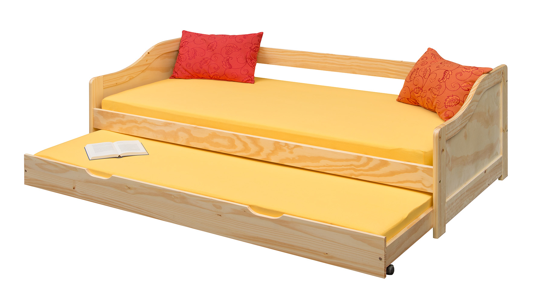 Sobre mais ultra fonctionnel, le lit banquette contemporain Pamela sera idéal pour les petits espaces ou les studios. Peu encombrant, il offrira 2 couchages de 90 x 200 cm. Sa structure est en pin massif naturel recouverte d'un vernis protecteur. Le lit banquette Pamela sera livré avec ses 2 sommiers.
