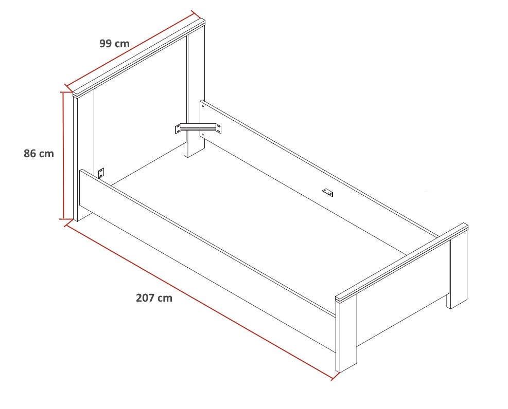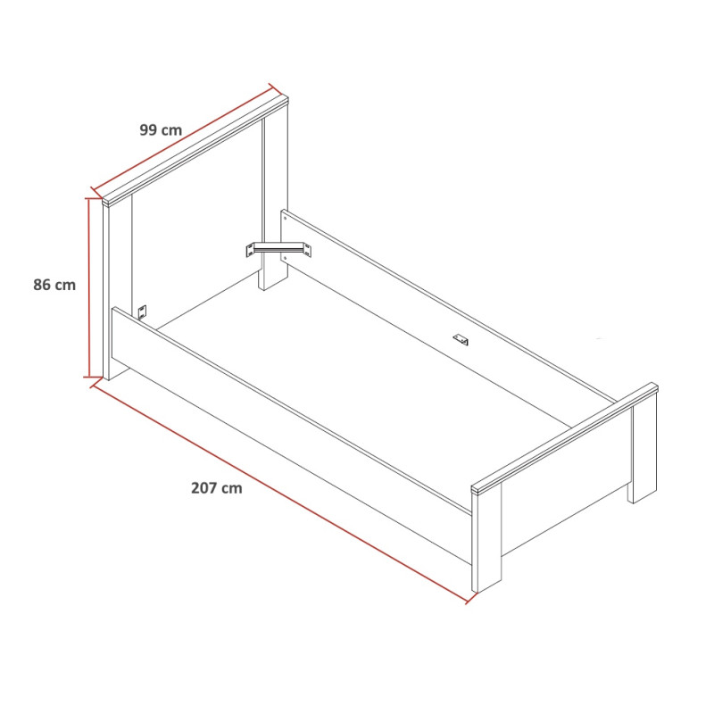 Avec ses dimensions de 99 cm de largeur, 86 cm de hauteur et 207 cm de profondeur, ce lit offre un espace de couchage confortable en 90 x 200 cm. Fabriqué à partir de panneaux de particules de première qualité d’une épaisseur de 16 à 22 mm, il garantit robustesse et longévité. Son design contemporain s’intègre harmonieusement à tous les styles de décoration, en particulier dans une chambre enfant moderne.