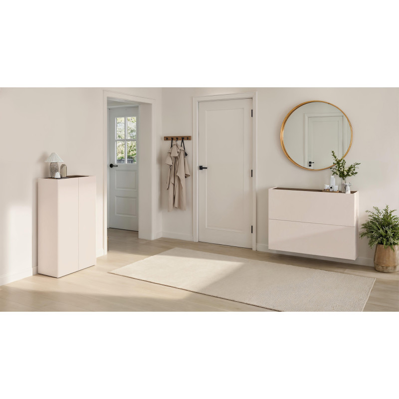 Véritable meuble de rangement polyvalent, ce modèle Runny s'adapte aussi bien aux besoins des particuliers qu'aux exigences décoratives des intérieurs contemporains. En tant que meuble d'entrée, il joue un rôle central dans l'organisation de votre domicile dès le premier pas franchi. Sa ligne épurée et ses couleurs cachemire et mercure s'accordent harmonieusement avec une grande variété de styles d'intérieur, du scandinave au minimaliste. Investir dans ce meuble Vivabita, c'est choisir l'alliance du design italien, de la praticité au quotidien et de la qualité durable.