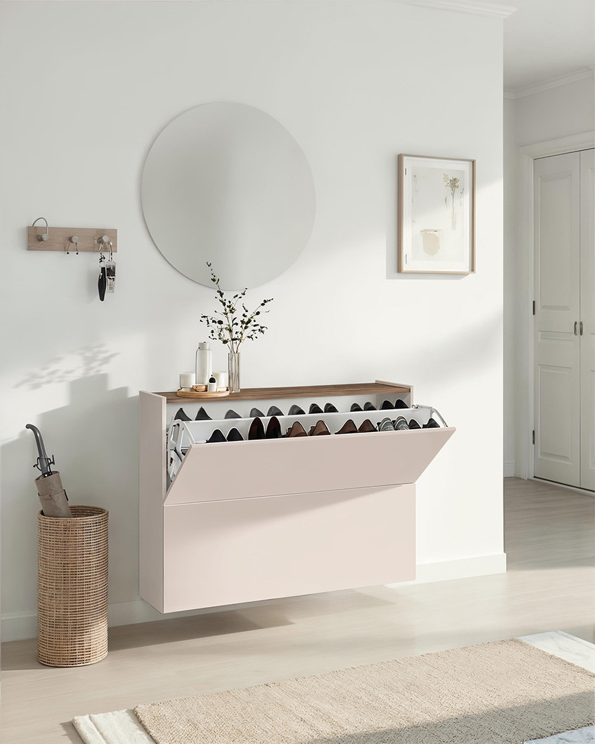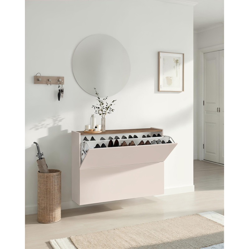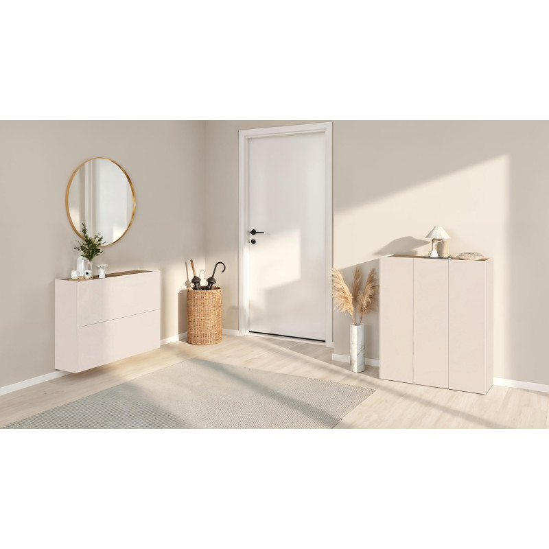 Donnez une nouvelle dimension à votre entrée avec ce meuble à chaussures suspendu signé Vivabita, conçu et fabriqué en Italie avec un soin particulier apporté aux finitions. Ce meuble à chaussures suspendu au coloris cachemire/mercure apporte une touche de sophistication contemporaine à votre intérieur, mariant élégance visuelle et praticité au quotidien. Ses lignes épurées et son design flottant créent une impression d'espace et de légèreté, idéale pour les entrées de toutes tailles.