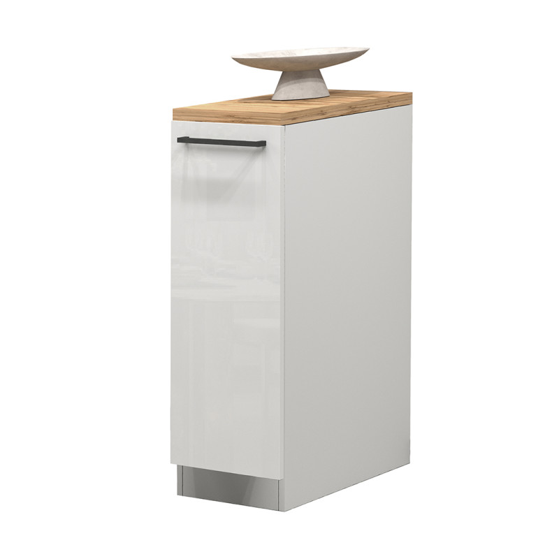 Conçu par la marque italienne Deladeco, le meuble bas de cuisine Solena allie esthétique moderne et praticité au quotidien. Avec ses dimensions compactes de 30 cm de longueur, 85 cm de hauteur et 60 cm de profondeur, ce meuble de cuisine s'intègre harmonieusement dans les espaces les plus exigus tout en offrant un volume de rangement optimisé. Sa finition bicolore blanc brillant et chêne wotan lui confère un caractère contemporain et chaleureux, parfaitement adapté aux cuisines actuelles qui recherchent l'équilibre entre sobriété et élégance.