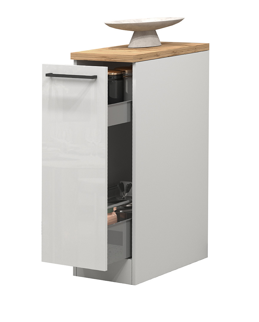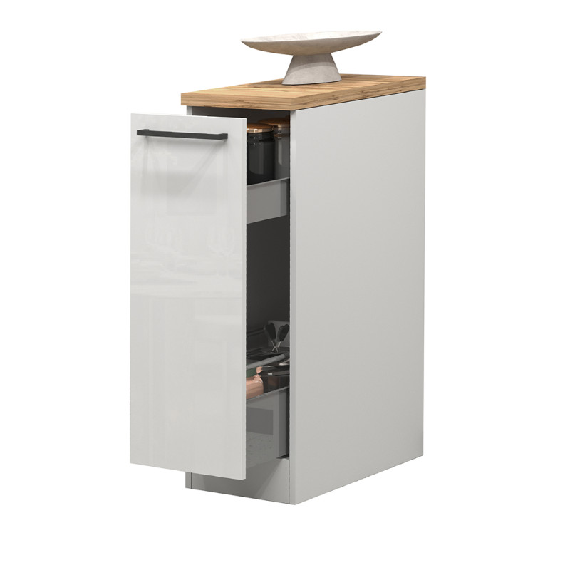 Fonctionnelle et accessible, cette solution de meuble de rangement cuisine répond aux besoins des particuliers soucieux d'organiser leur espace avec style. En tant que meuble de rangement modulable, il peut être positionné seul ou associé à d'autres éléments de la gamme Solena pour créer une cuisine cohérente et harmonieuse. Sa finition mélaminée facilite l'entretien : un simple chiffon doux et humide suffit à conserver son aspect impeccable et sa brillance au fil des années.