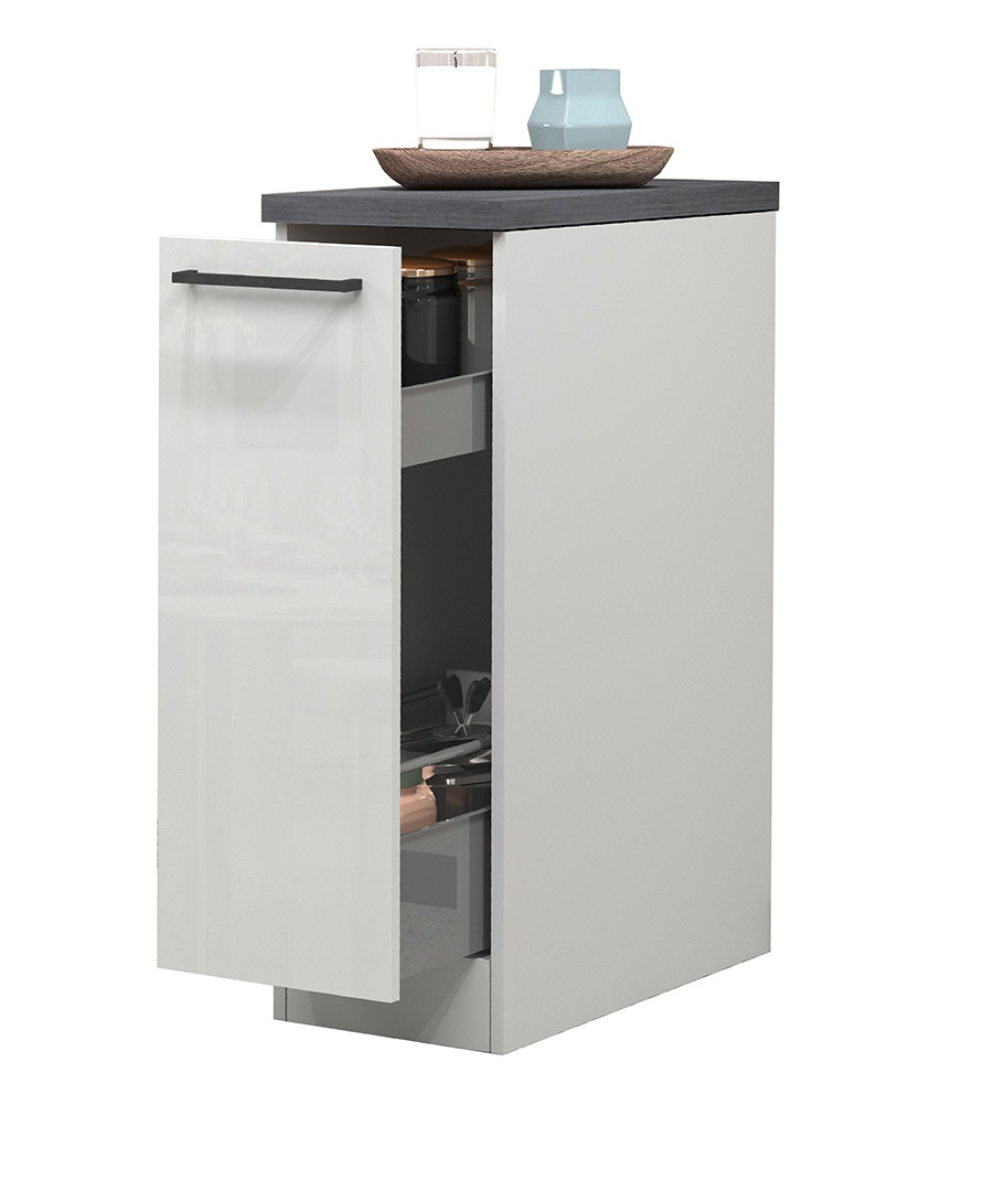 Signé par la marque italienne Deladeco, ce meuble de cuisine au design contemporain s'impose comme une solution de rangement à la fois esthétique et pratique. Avec ses dimensions compactes de 30 cm de longueur, 85 cm de hauteur et 60 cm de profondeur, il s'intègre harmonieusement dans les espaces les plus étroits tout en offrant un volume de rangement optimisé. Sa finition bicolore blanc brillant et béton apporte une touche de modernité assumée, idéale pour les cuisines au style épuré et contemporain.