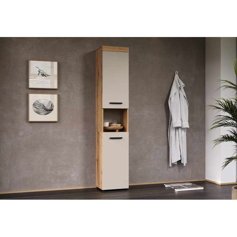 | Colonne de salle de bain moderne chêne/cachemire Leane | | Longueur: 36 cm Hauteur: 184 cm Profondeur: 31 cm | En stock 1 semaine | 151 € 99 | ||