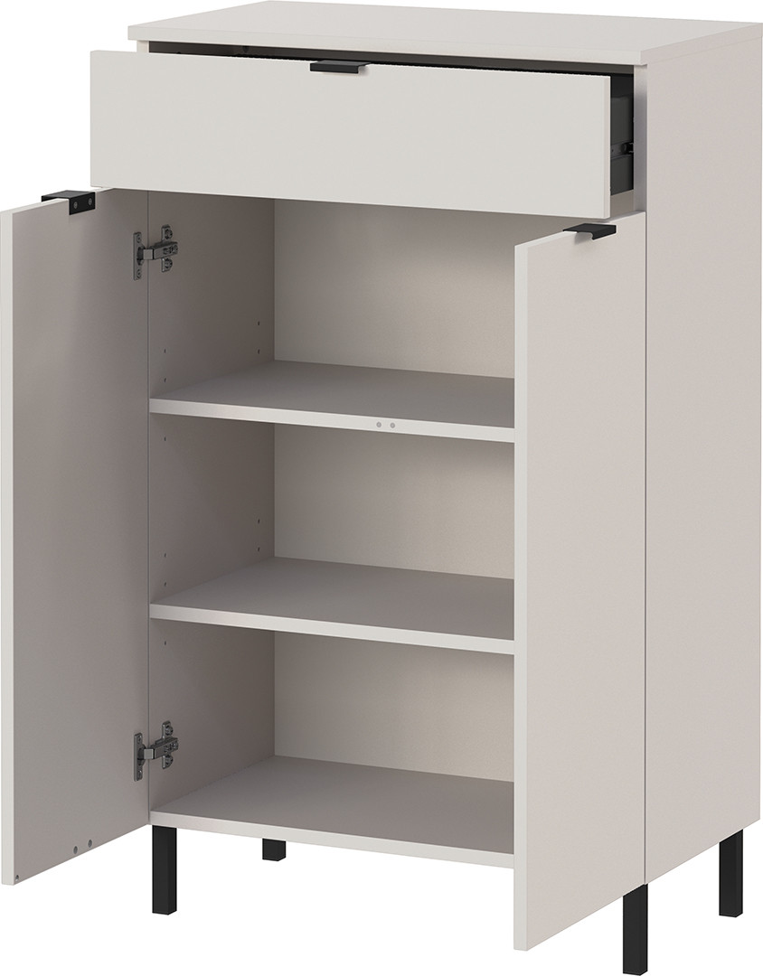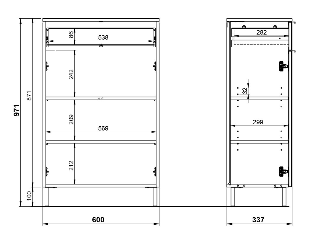 Pensé pour un usage quotidien, ce meuble est conçu à partir de panneaux de particules mélaminés de haute qualité avec chants ABS, assurant robustesse et longévité. Il repose sur un piétement en métal noir thermolaqué, stable et résistant à l’humidité. Les deux portes battantes sont équipées d’un système d’amortisseurs pour une fermeture douce et silencieuse. À l’intérieur, deux étagères réglables en hauteur permettent une organisation personnalisée, idéale pour ranger vos produits de beauté, serviettes ou accessoires, faisant de ce meuble un meuble de rangement de salle de bain à la fois esthétique et fonctionnel.
