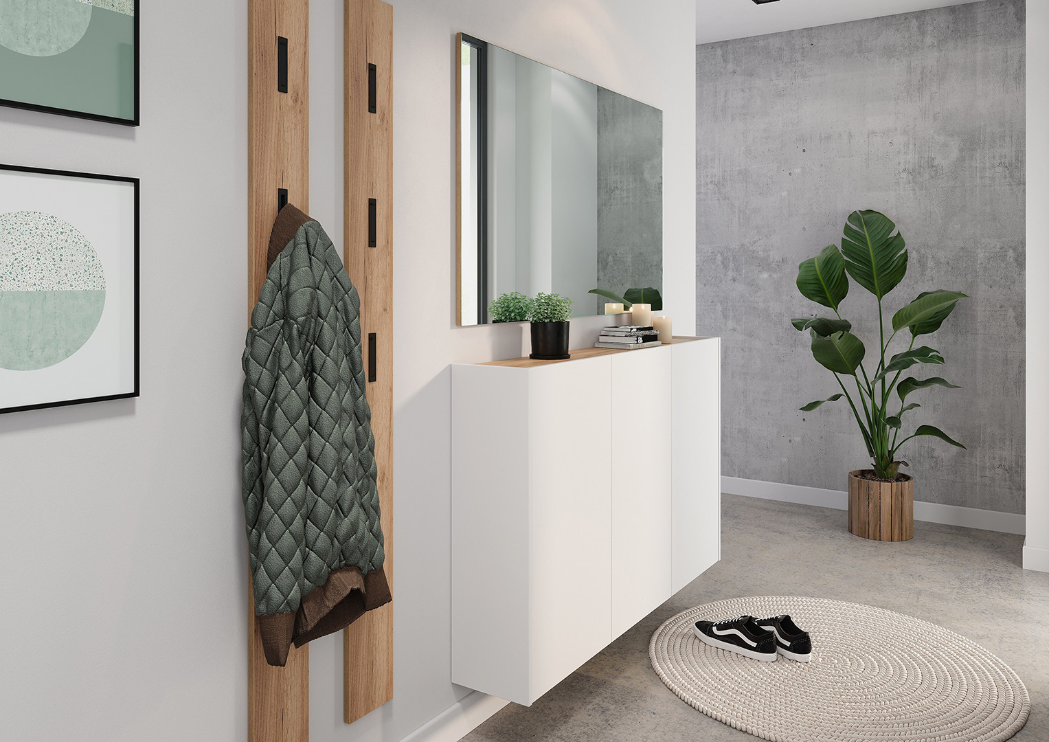 Donnez du caractère à votre entrée avec ce meuble suspendu au design contemporain. À la fois chic et fonctionnel, il séduit par sa finition blanc et chêne qui s’intègre avec style dans tout type de décoration. Avec ses dimensions optimisées (138 cm de long, 87 cm de haut et 25 cm de profondeur), ce meuble est pensé pour maximiser l’espace disponible tout en offrant une solution de rangement pratique. Fabriqué en panneaux de particules mélaminés haut de gamme, il garantit une robustesse et une durabilité à toute épreuve.