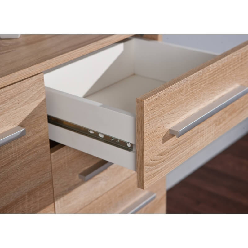 Le meuble de rangement contemporain Dublin vous offrira un espace de rangement appréciable tout en apportant une touche raffinée dans votre intérieur. Sa structure est fabriquée en panneaux de particules de haute qualité. Il se compose de 2 portes comprenant 1 étagère ajustable en hauteur pouvant supporter un poids maximal de 5 kg et d'1 tiroir monté sur coulisses métalliques. Pour un ensemble harmonieux, optez pour les autres meubles de la gamme Dublin vendus séparément.