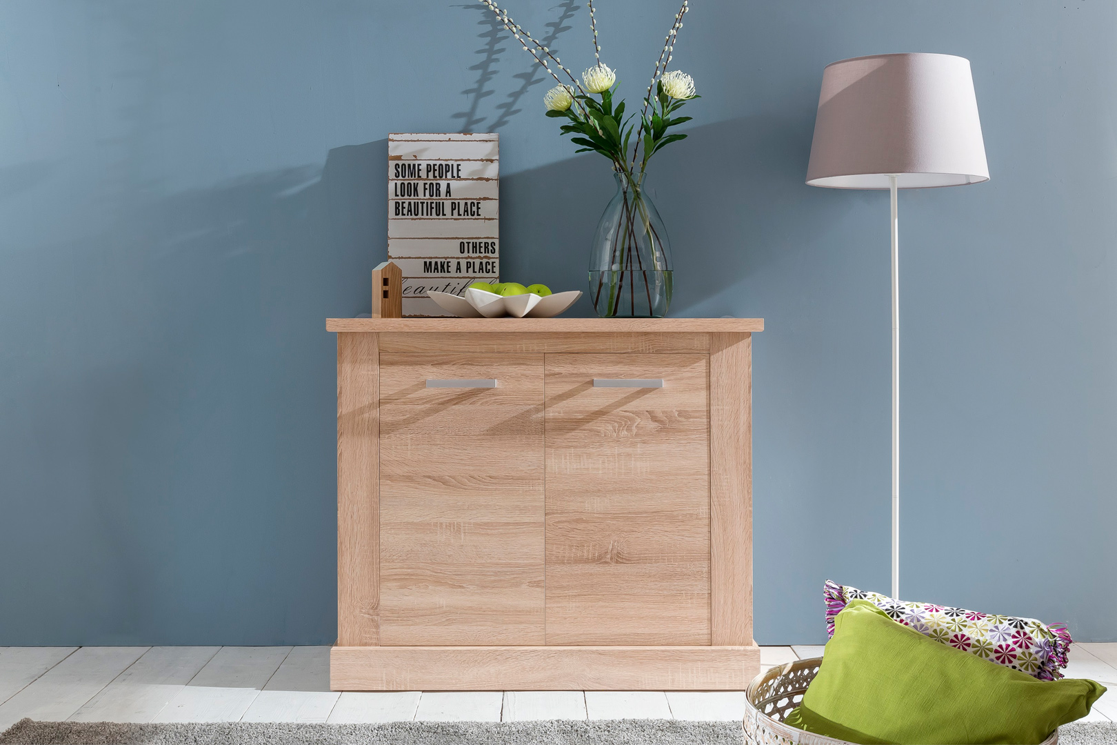 Le meuble de rangement contemporain Zahara vous charmera par ses lignes sobres et son coloris chaleureux. Sa structure est fabriquée en panneaux de particules mélaminés de première qualité. Il se compose de deux portes comprenant 2 étagères intérieures. Pour un ensemble harmonieux, vous pourrez choisir d'associer les autres meubles de la gamme Zahara vendus séparément.