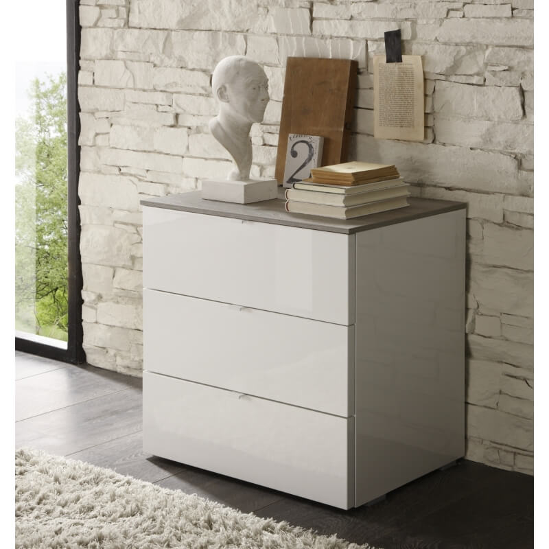 Le meuble de rangement design Louisa s'intègrera parfaitement dans votre intérieur tout en apportant une touche lumineuse grâce à son coloris blanc laqué brillant. Sa structure est fabriquée en panneaux de particules de haute qualité de 16 mm d'épaisseur. Il se compose de 3 tiroirs équipés de la fermeture Soft close. Les poignées en métal verni vous garantiront une excellente prise en main. Le meuble de rangement Louisa est équipé de pieds ronds noirs invisibles. Pour un ensemble harmonieux, vous pourrez choisir les autres éléments de la gamme Louisa vendus séparément.