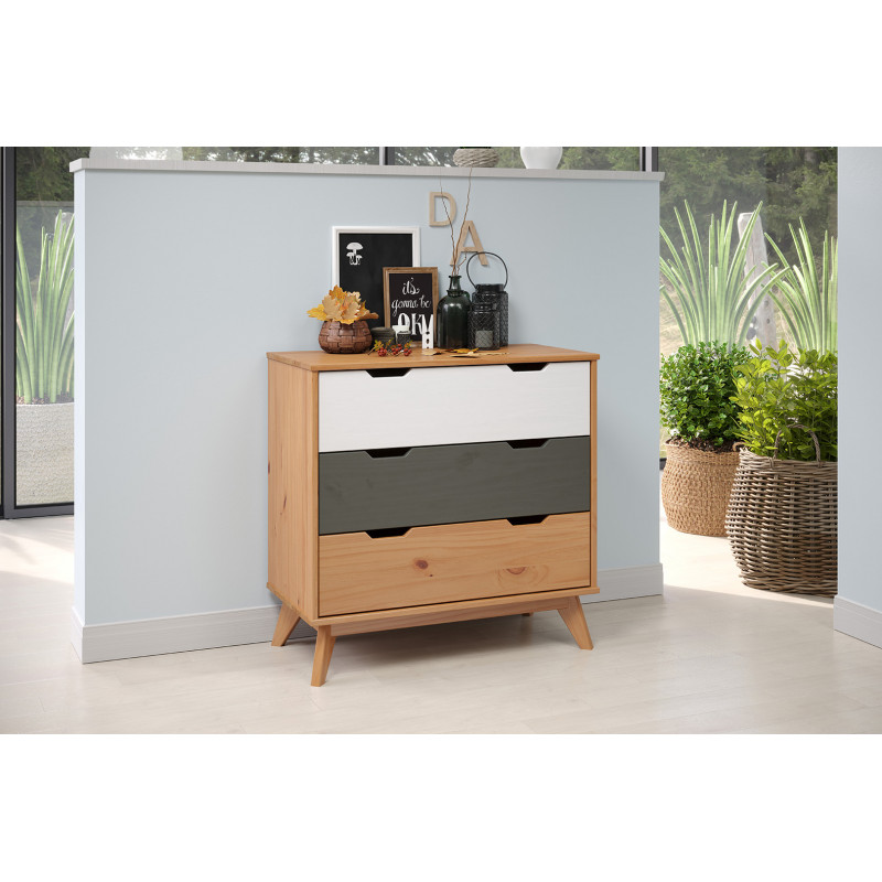 | Structure | Pin massif recouvert d'une laque couleur miel - papier décor pour le coloris blanc et gris |