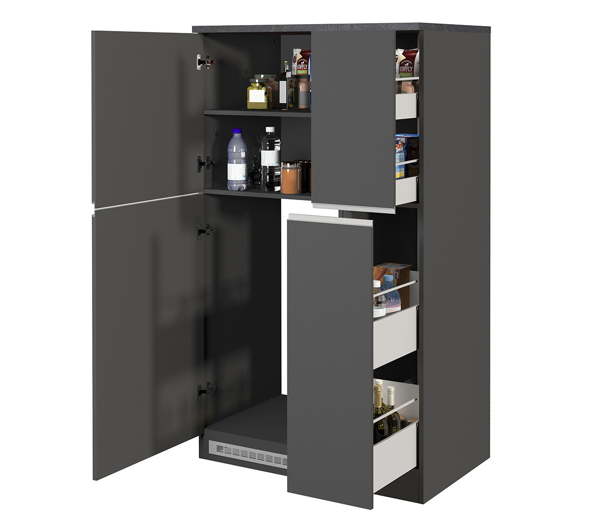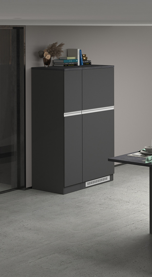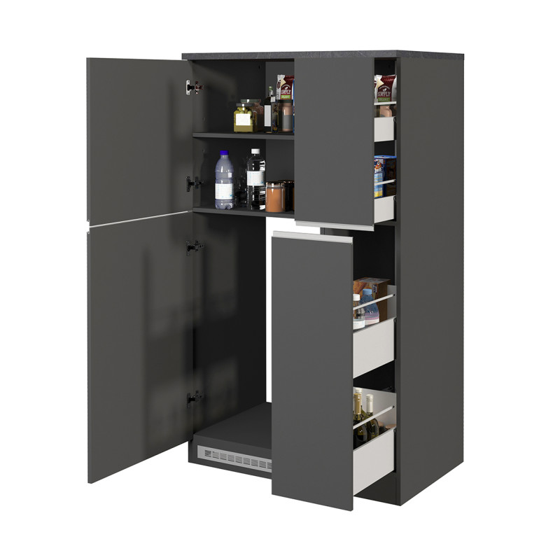 Que vous souhaitiez aménager une cuisine neuve ou optimiser une cuisine existante, ce meuble de rangement polyvalent répondra à vos besoins. Son coloris anthracite mat/béton s’accorde parfaitement avec les tendances actuelles du mobilier d’intérieur. Grâce à sa fabrication italienne, vous profitez d’un produit au design soigné et à la finition mélaminée résistante. Il est également couvert par une garantie de 2 ans pour une tranquillité d’esprit totale.