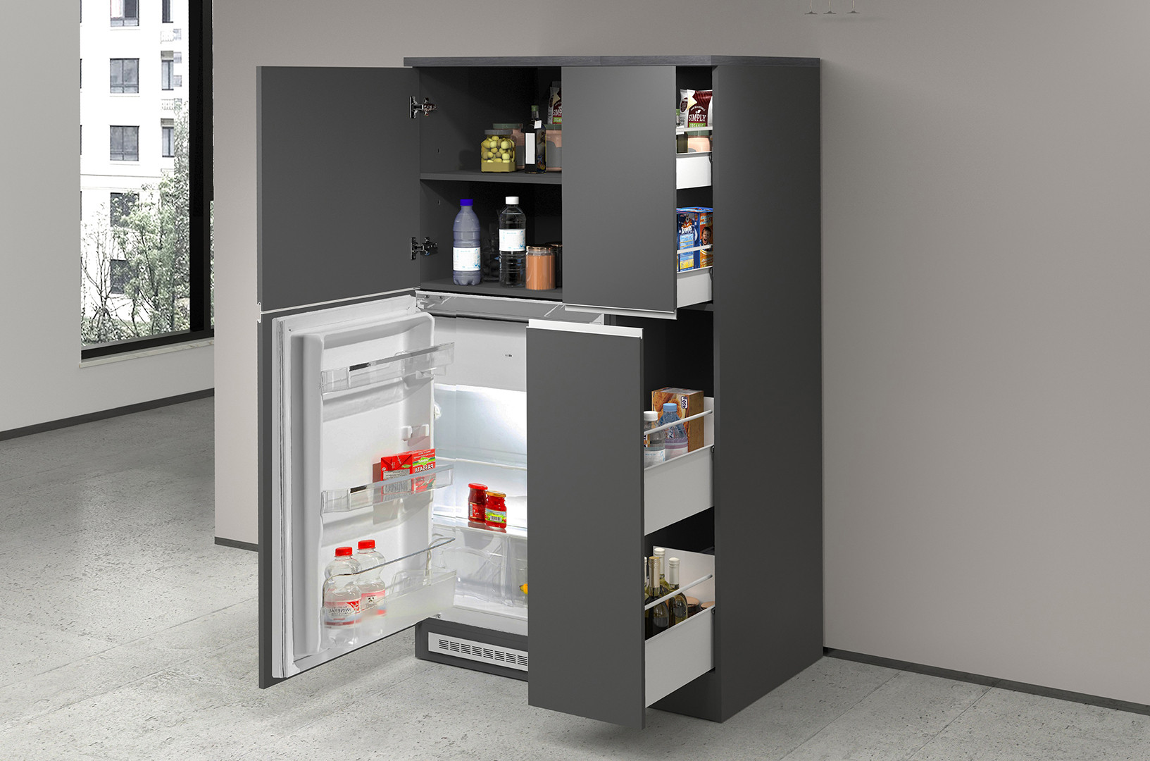 | Meuble pour frigo encastrable 60 cm anthracite mat/béton Solena | | Longueur: 60 cm Hauteur: 165 cm Profondeur: 60 cm | En stock 48 à 72h | 247 € 50 | ||