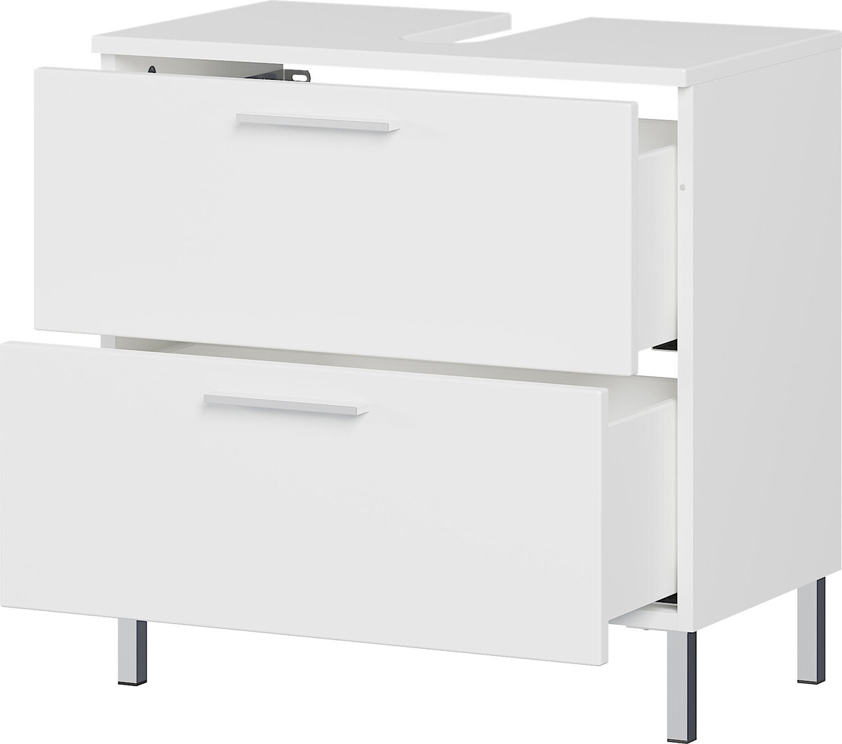 Ce meuble sous vasque est équipé de deux tiroirs à fermeture douce et automatique Sof-Close, qui offrent un rangement sécurisé pour tous vos essentiels. Avec une capacité de charge de 10 kg par tiroir, vous pouvez y ranger vos produits de soin, serviettes, ou même vos bouteilles de shampoing en toute tranquillité. Sa finition en mélaminé et ses chants ABS de haute qualité lui confèrent une excellente durabilité, tandis que l’entretien est un jeu d’enfant : un simple coup de chiffon doux et un peu de savon neutre suffisent pour le garder comme neuf.