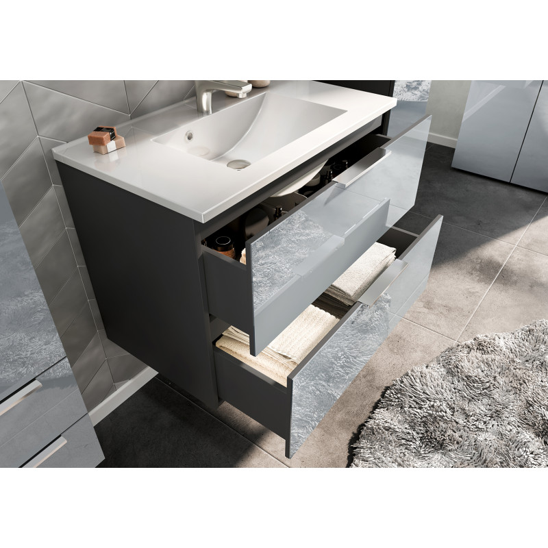 Ce meuble sous vasque moderne avec sa finition graphite et verre gris est l'élément qu'il vous faut. Fabriqué en Allemagne par Vivabita, il se démarque par une qualité de fabrication haut de gamme. Avec ses dimensions bien pensées (81 cm de long, 61 cm de haut, 47 cm de profondeur), il offre deux tiroirs spacieux et une ouverture Soft Close – vous allez adorer cette sensation douce et silencieuse à chaque utilisation ! Suspendu pour un look léger et épuré, il ajoutera du style sans effort à votre espace.