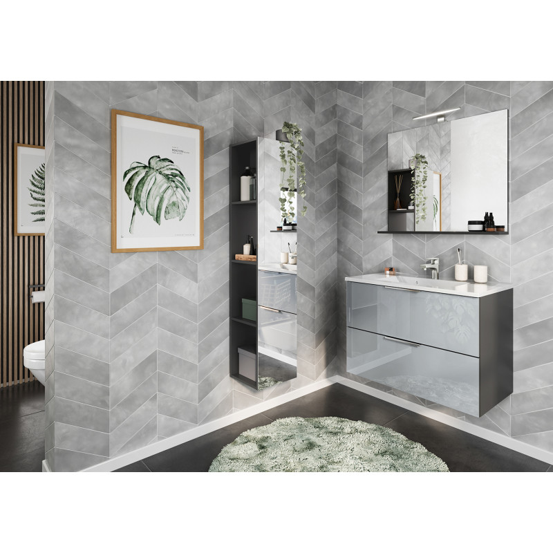 | Meuble de salle de bain suspendu H 111 cm graphite/verre gris Valdo | | Longueur: 36 cm Hauteur: 111 cm Profondeur: 34 cm | En stock 1 à 2 semaines | 355 € 00 | ||