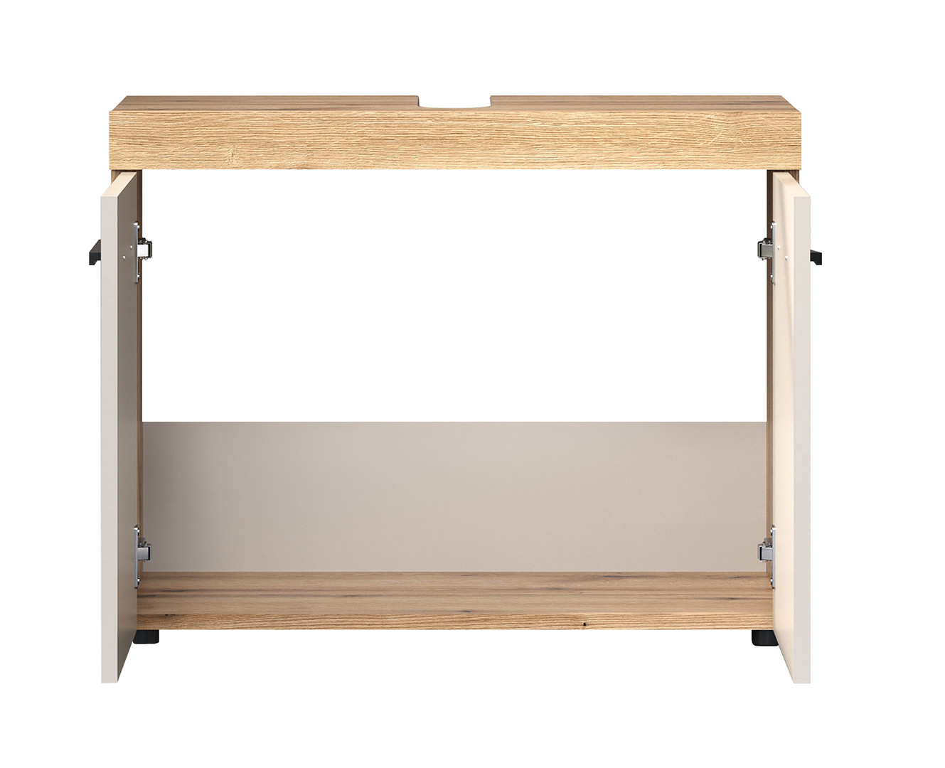 Pensé pour offrir une organisation optimale, ce meuble propose deux portes battantes qui permettent de ranger facilement vos produits de toilette. L’élégance de son coloris chêne/cachemire vient sublimer cette fonctionnalité, créant un ensemble cohérent et moderne. En tant que meuble de salle de bain, il offre une solution esthétique et pratique au quotidien, tout en étant simple à entretenir grâce à un simple chiffon doux et humide. Sa finition mélaminée renforce sa résistance à l’humidité et garantit une durabilité adaptée à un environnement de salle d’eau souvent soumis à des variations de température et de condensation.