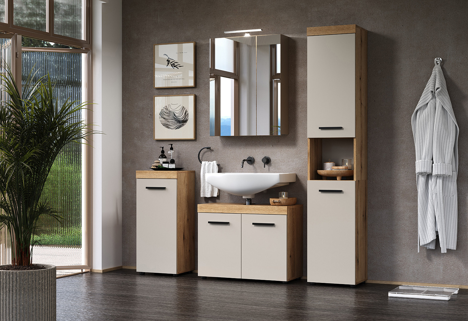 | Colonne de salle de bain moderne chêne/cachemire Leane | | Longueur: 36 cm Hauteur: 184 cm Profondeur: 31 cm | En stock 1 semaine | 151 € 99 | ||