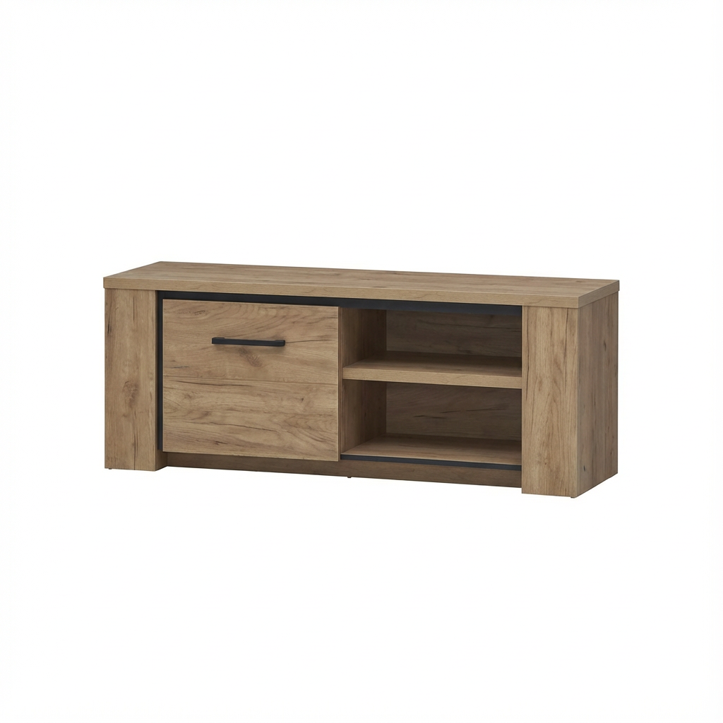 En plus de son apparence soignée, ce meuble TV en bois est ultra pratique ! Ses deux étagères spacieuses et sa porte battante permettent de ranger discrètement vos accessoires, qu'il s'agisse de consoles de jeux, décodeurs ou lecteurs multimédias. Le bois, avec sa finition impeccable, est non seulement robuste mais aussi facile à entretenir : un chiffon doux et un peu de savon neutre, et le tour est joué.