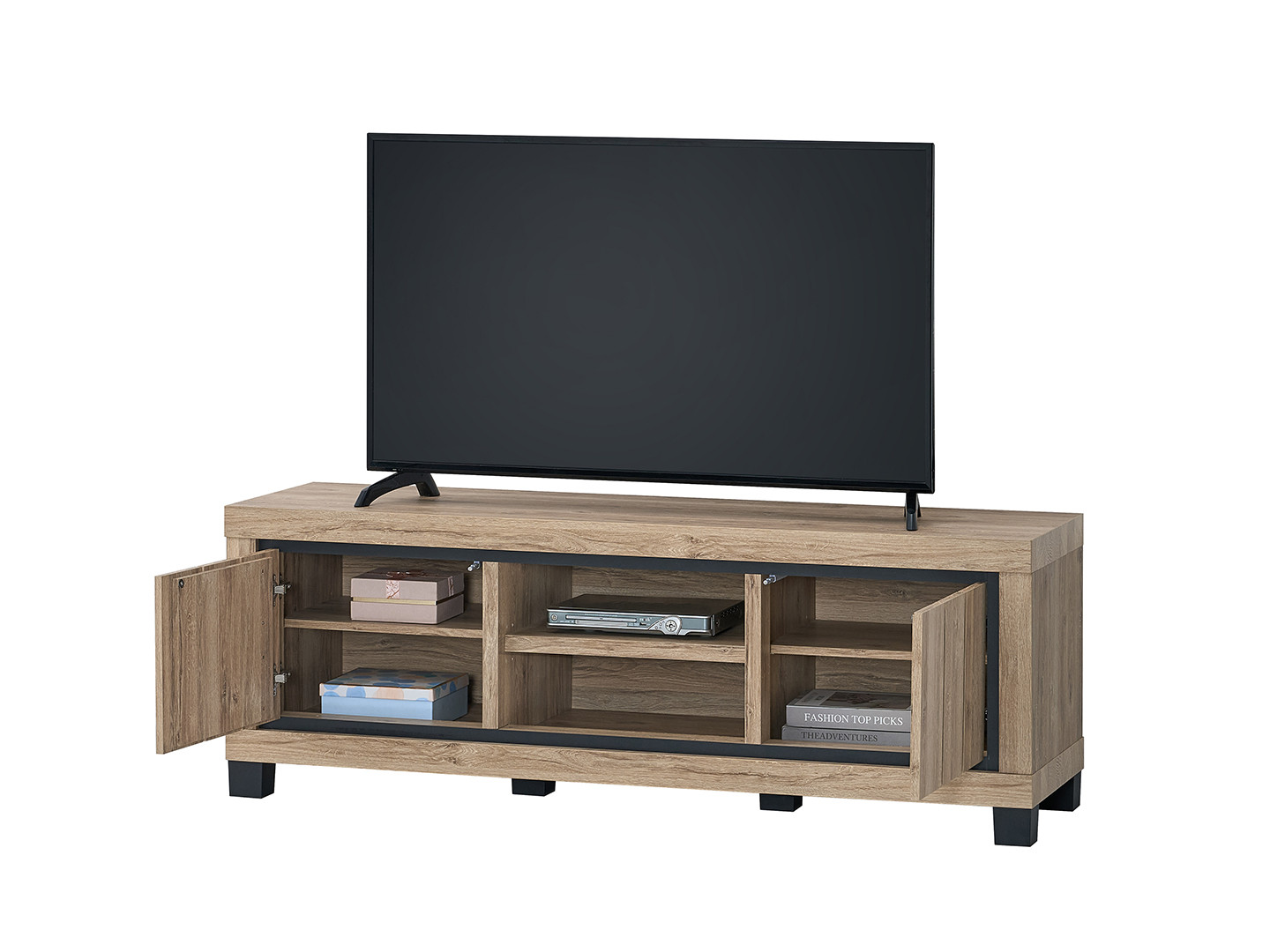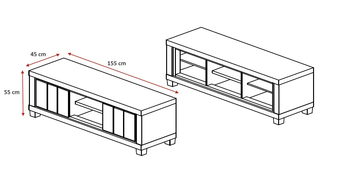 Avec ses 155 cm de longueur, 55 cm de hauteur et 45 cm de profondeur, ce meuble de salon offre un espace généreux et bien pensé pour accueillir votre téléviseur et l'ensemble de vos équipements multimédias. Il dispose de 3 étagères intérieures et de 2 portes battantes, permettant de ranger vos appareils, câbles et accessoires à l'abri du regard tout en conservant un espace de vie ordonné et agréable. La sobriété de sa teinte chêne summer apporte une chaleur naturelle et une luminosité douce à votre pièce de vie.