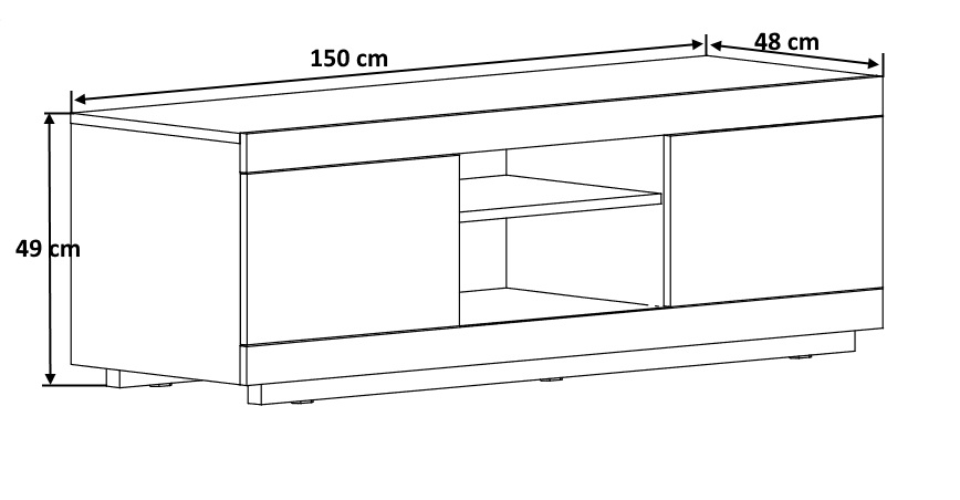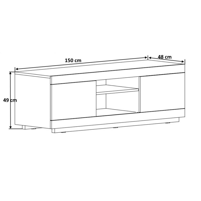 Ses dimensions sont modestes : 150 cm de longueur, pour 49 de hauteur et 48 de profondeur. Vous pourrez facilement intégrer ce mobilier contemporain dans le salon d'un petit appartement. Ce n'est pas tous les jours qu'on a la chance de tomber sur un meuble TV aussi élégant et qui ne soit pas trop encombrant.