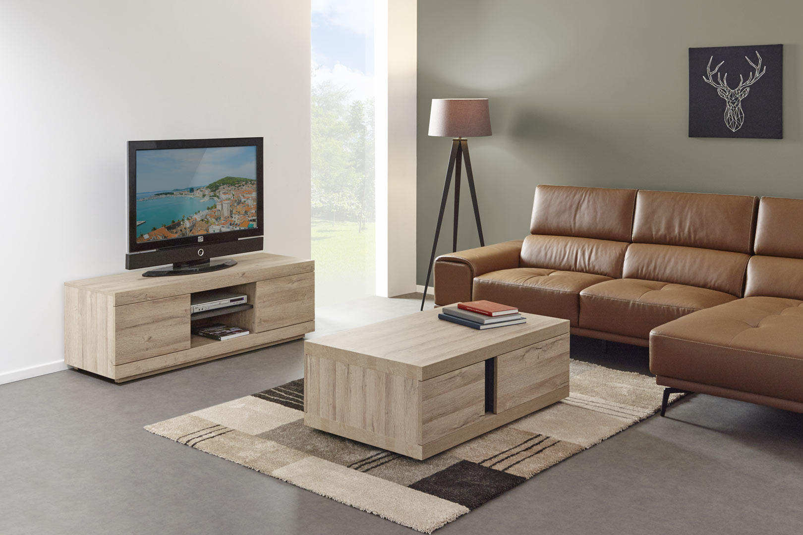 Le meuble TV contemporain chêne clair Jordana est fabriqué en panneaux de particules de première qualité. Son coloris est exceptionnel de sobriété, et lui permet de se marier avec la décoration de la plupart des salons ou des chambres. Que votre déco soit moderne ou rustique, qu'elle soit sophistiquée ou rudimentaire, le meuble TV Jordana se fondra dans le décor sans aucun problème.