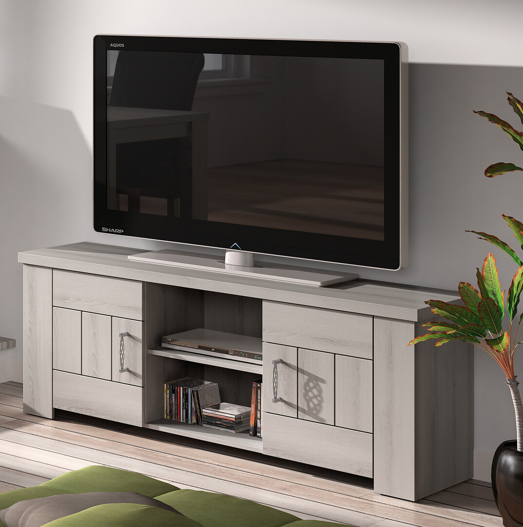 Le meuble TV contemporain Elisa répondra sans problème à vos attentes grâce à son coloris chêne gris et ses lignes droites. Facile à marier avec d'autres styles, un simple luminaire industriel ou un magnifique tapis moderne sauront la mettre en valeur et lui faire traverser les années sans jamais se démoder ou vous lasser.