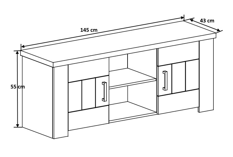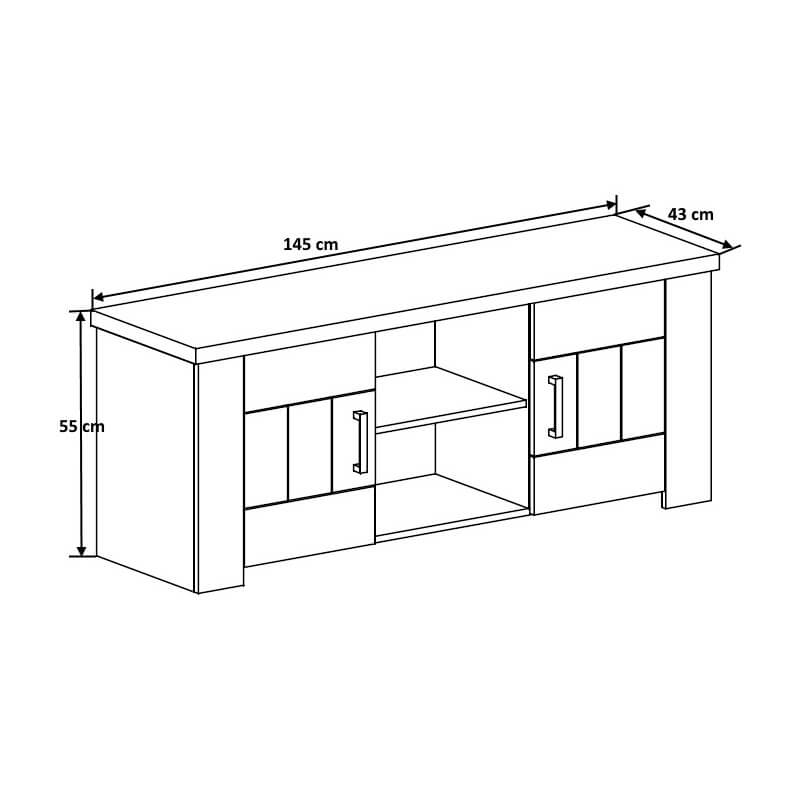 Le meuble TV Elisa se compose deux portes comprenant chacune une étagère et d'une niche ouverte avec étagère pour installer vos appareils vidéo. Des trous sont prévus à l'arrière du meuble pour faciliter le passage des câbles.