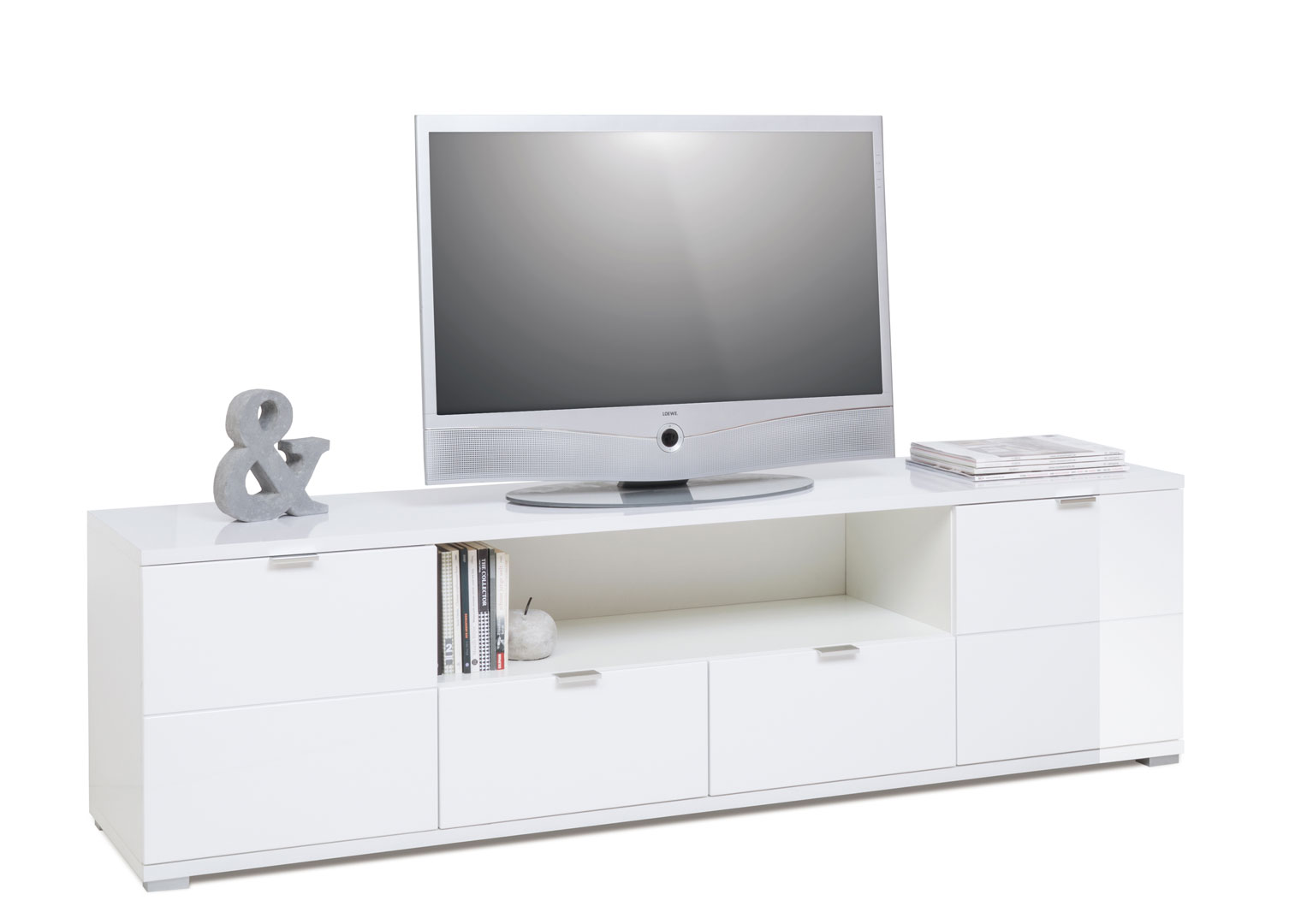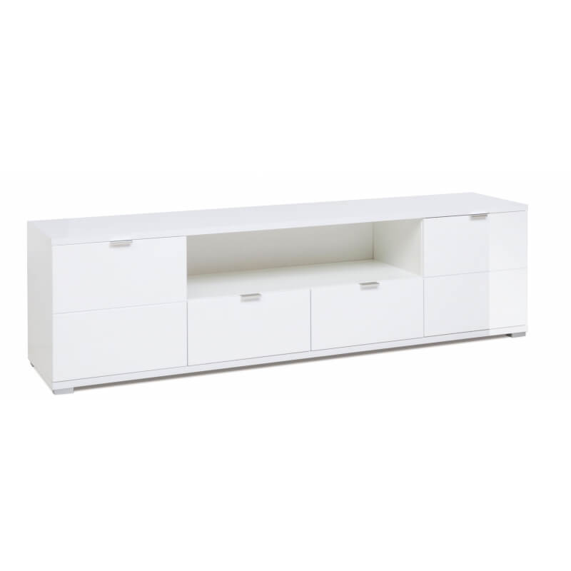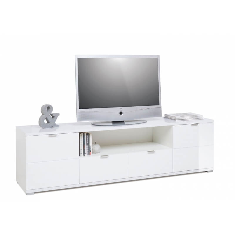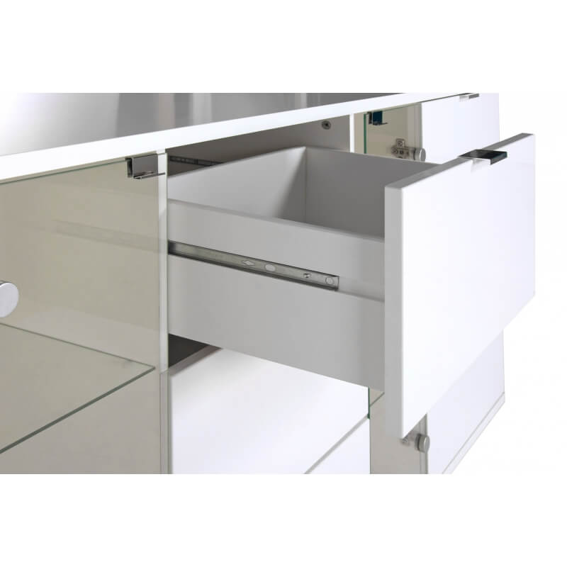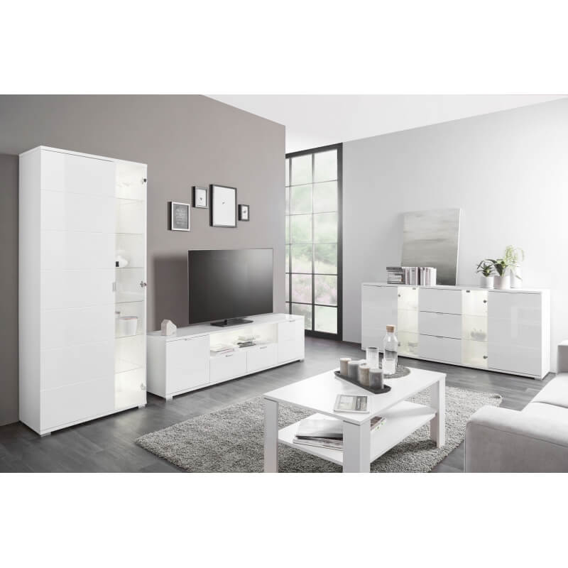 Le meuble TV design Ludivine possède tous les atouts pour vous séduire et apportera une touche lumineuse et originale dans votre intérieur. Sa structure est fabriquée en panneaux de particules de première qualité recouverte d'une laque blanche. Il se compose de 2 portes, de 2 tiroirs montés sur coulisses métalliques et d'une niche de rangement. Le meuble TV Ludivine est doté d'un éclairage Led. Pour un ensemble harmonieux, optez également pour les autres meubles de la gamme Ludivine vendus séparément.