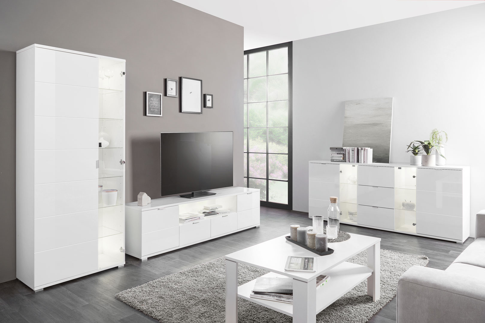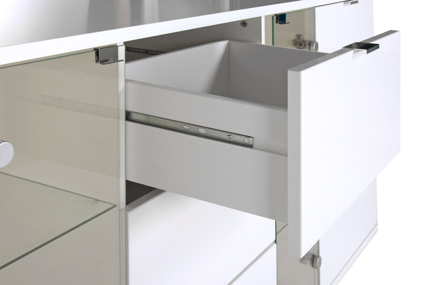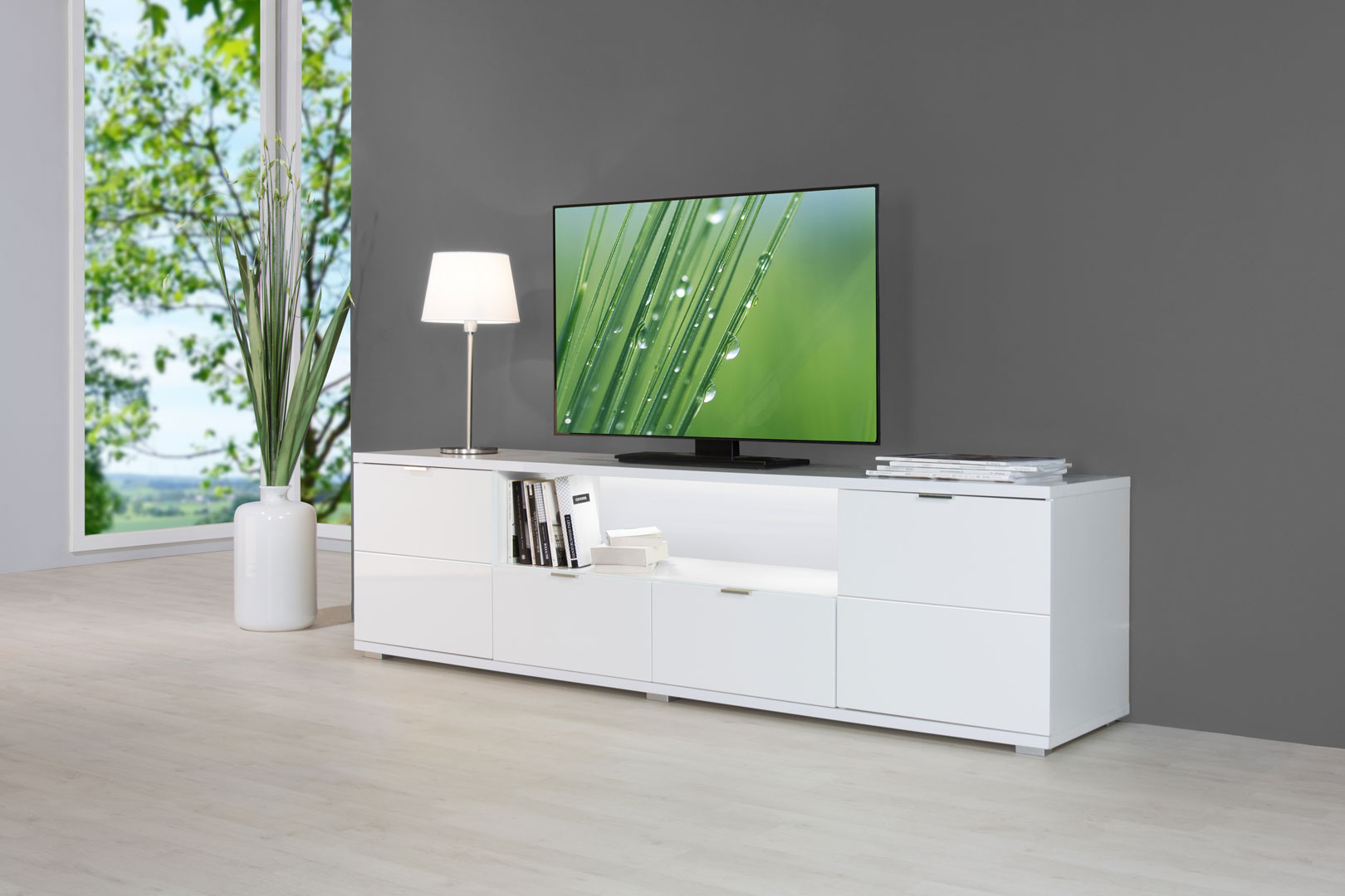 Le meuble TV design Ludivine possède tous les atouts pour vous séduire et apportera une touche lumineuse et originale dans votre intérieur. Sa structure est fabriquée en panneaux de particules de première qualité recouverte d'une laque blanche. Il se compose de 2 portes, de 2 tiroirs montés sur coulisses métalliques et d'une niche de rangement. Le meuble TV Ludivine est doté d'un éclairage Led. Pour un ensemble harmonieux, optez également pour les autres meubles de la gamme Ludivine vendus séparément.