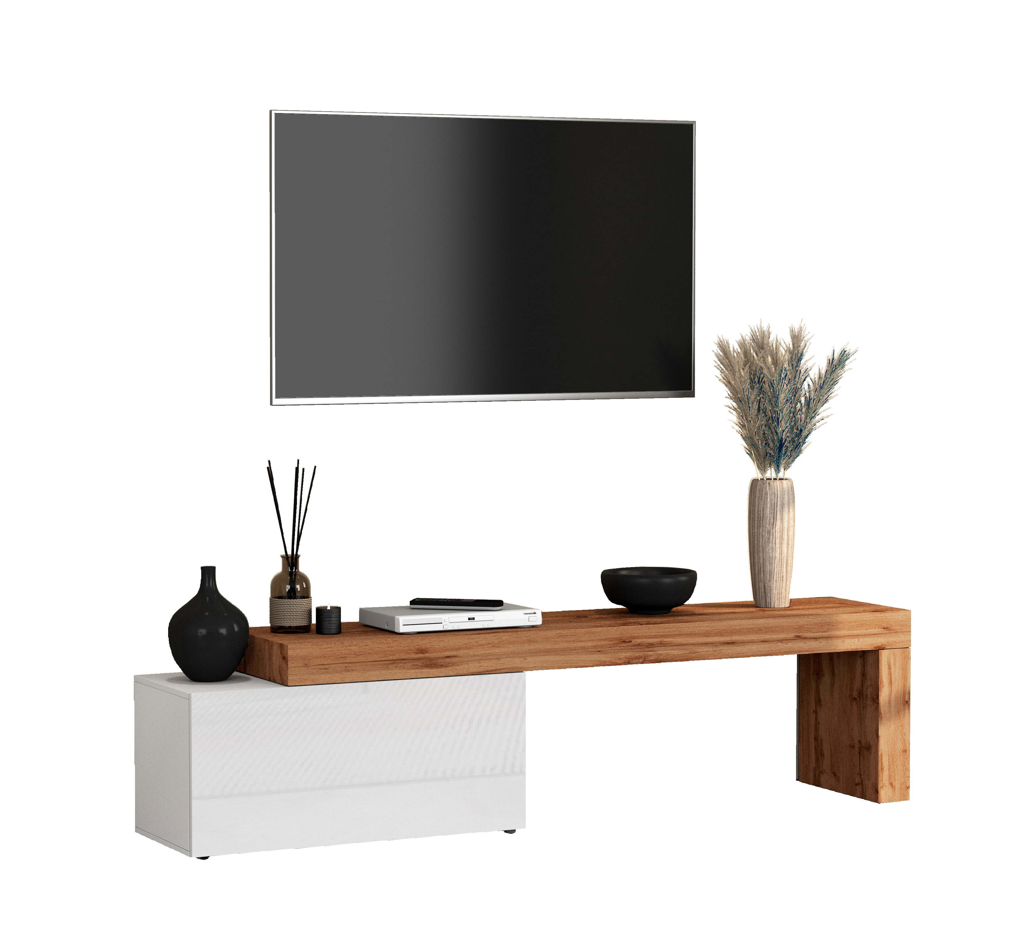 | Meuble TV extensible 180/290 cm blanc brillant/chêne wotan Neros | | Longueur: 180/290 cm Hauteur: 51 cm Profondeur: 40 cm | En stock 48 à 72h | 395 € 00 |