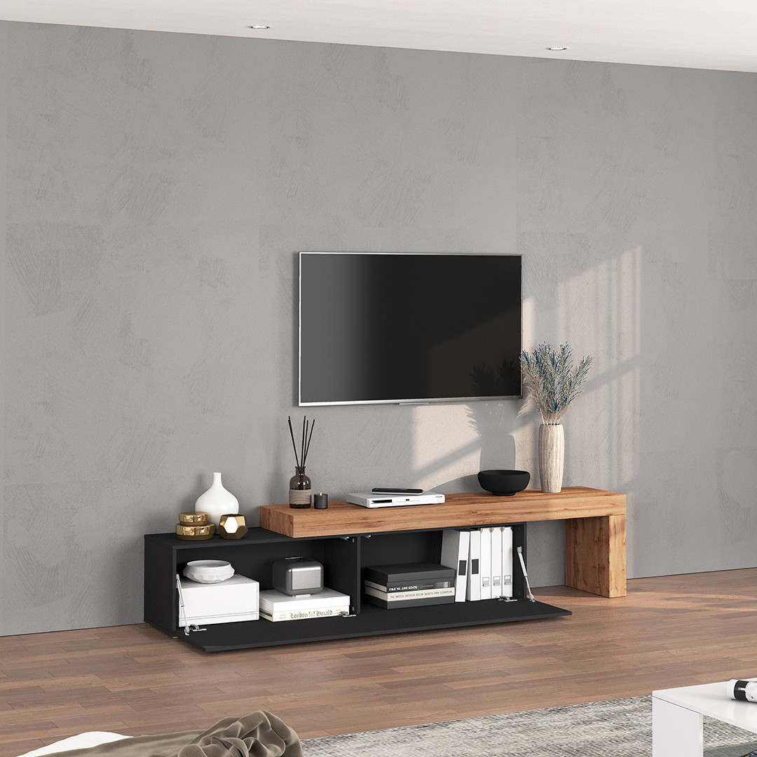 | Meuble TV extensible 180/290 cm anthracite mat/chêne wotan Neros | | Longueur: 180/290 cm Hauteur: 51 cm Profondeur: 40 cm | En stock 48 à 72h | 395 € 00 | ||