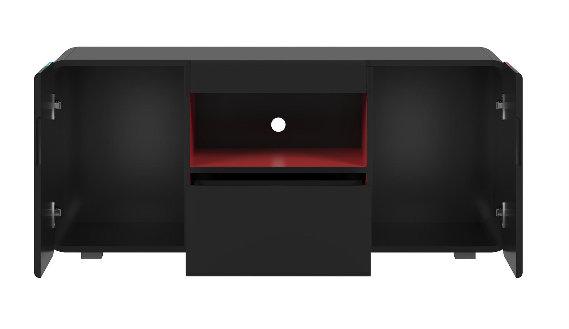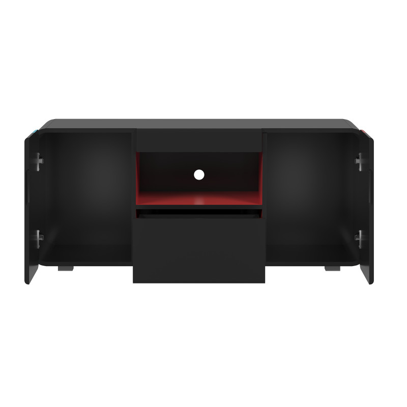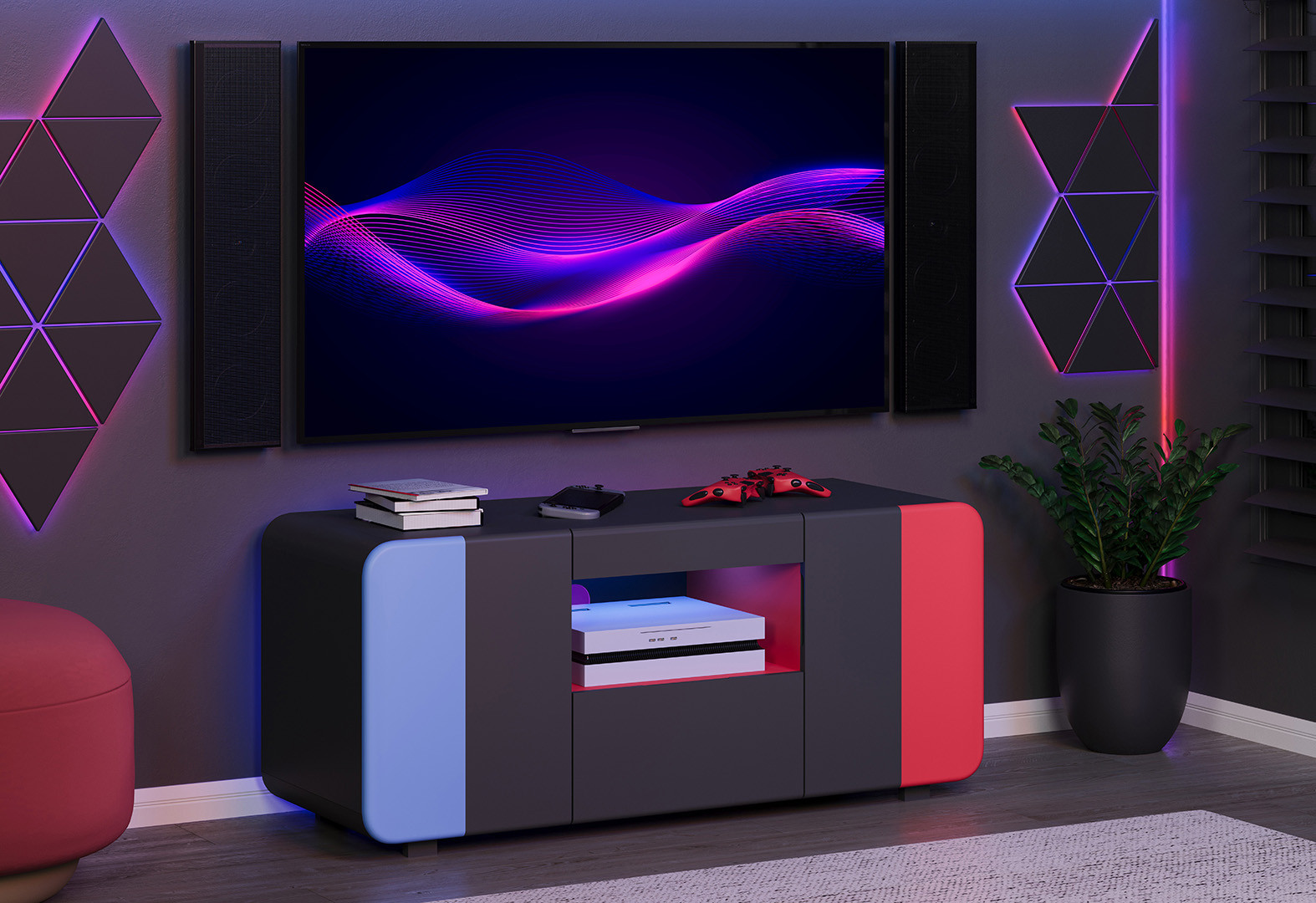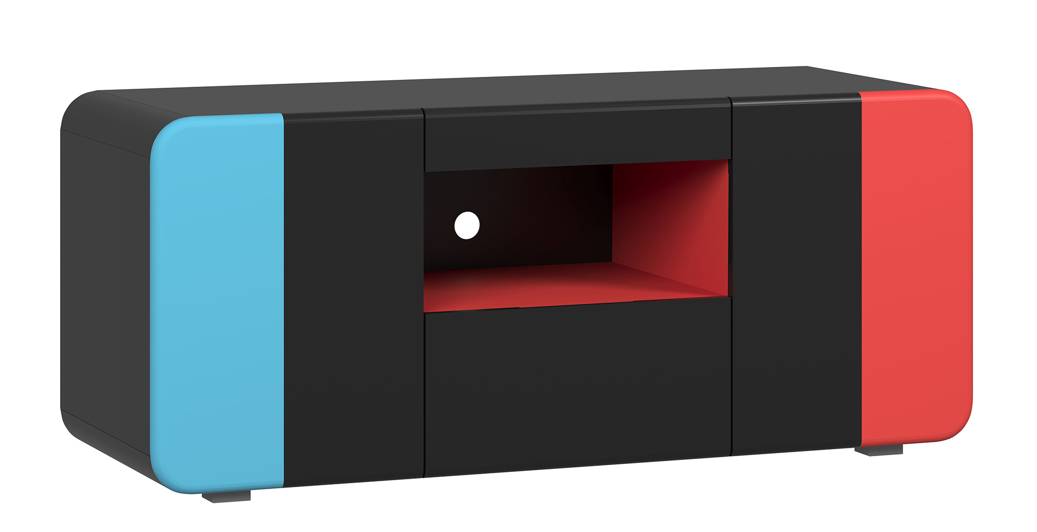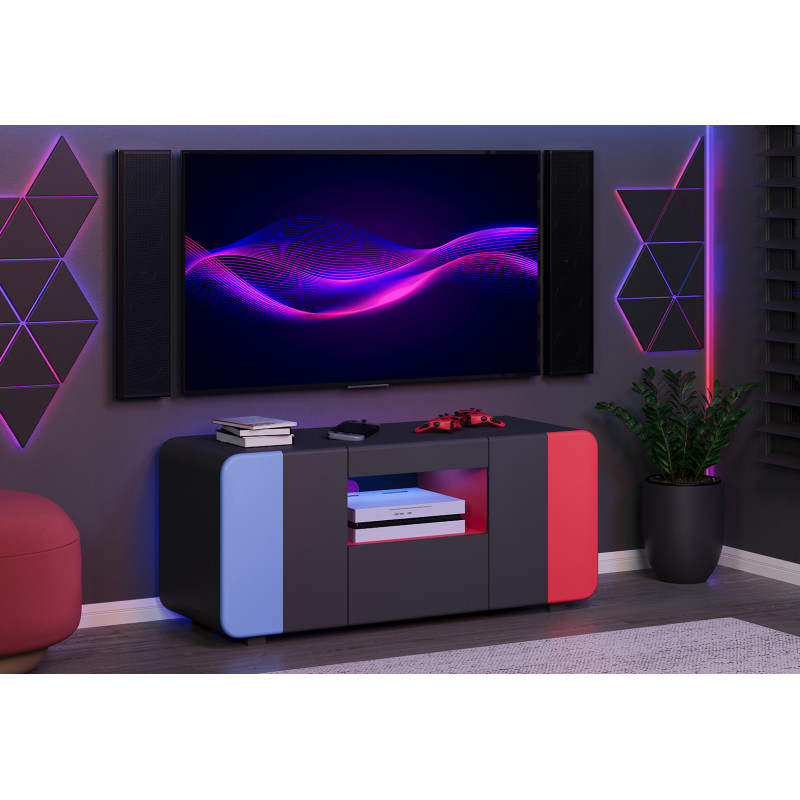 Le Meuble TV moderne 115 cm noir/bleu/rouge Lorie de la marque Deladeco se distingue par son style résolument contemporain et son allure laquée qui attire immédiatement le regard. Conçu pour un usage particulier, il associe praticité et design grâce à sa structure en panneaux de particules mélaminés de première qualité, revêtus d’une laque mate élégante. Ce modèle est idéal pour compléter un meuble tv au cœur de votre espace de vie, tout en offrant une intégration harmonieuse avec le reste de votre mobilier. Pour plus d’inspiration, n’hésitez pas à consulter ce meuble tv afin d’explorer d’autres possibilités assorties.
