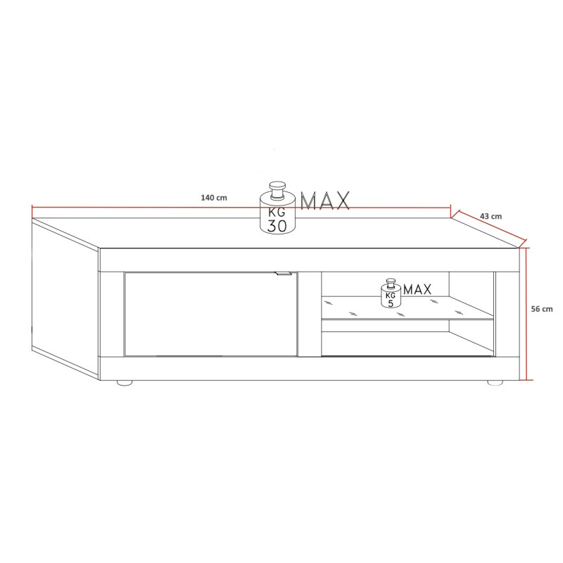 Le meuble Agathe ne se contente pas d’être beau, il est aussi pratique ! Sa porte battante et son étagère offrent un rangement astucieux pour vos appareils multimédias. Les guides et charnières en métal garantissent une ouverture douce et durable, parfaite pour un usage quotidien. En bonus, vous pouvez choisir un éclairage LED blanc ou RGB (rouge, vert, bleu) pour créer l’ambiance qui vous ressemble. Avec un poids de 30 kg, il reste simple à déplacer tout en assurant une stabilité parfaite.