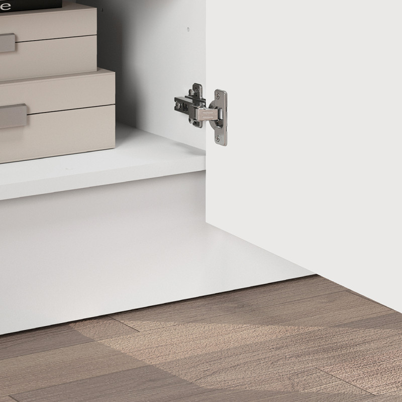 Au cœur de ce meuble de salon se trouve une structure robuste composée de panneaux de particules mélaminés de première qualité en 16 mm. Le corps, finition blanc mat, contraste subtilement avec les façades blanc brillant, créant un jeu de matières particulièrement tendance. Cette dualité mat/brillant apporte profondeur et caractère à l'ensemble, tout en s'harmonisant facilement avec la plupart des environnements intérieurs. Avec une hauteur de 45 cm et une profondeur de 35 cm, ses proportions sont pensées pour accueillir votre téléviseur dans des conditions optimales, sans encombrer visuellement l'espace.