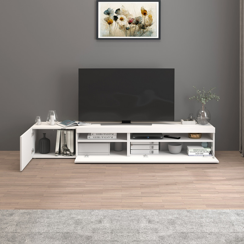 | Meuble TV moderne 260 cm blanc brillant Enaya | | Longueur: 260 cm Hauteur: 36 cm Profondeur: 40 cm | En stock 48 à 72h | 395 € 00 | ||