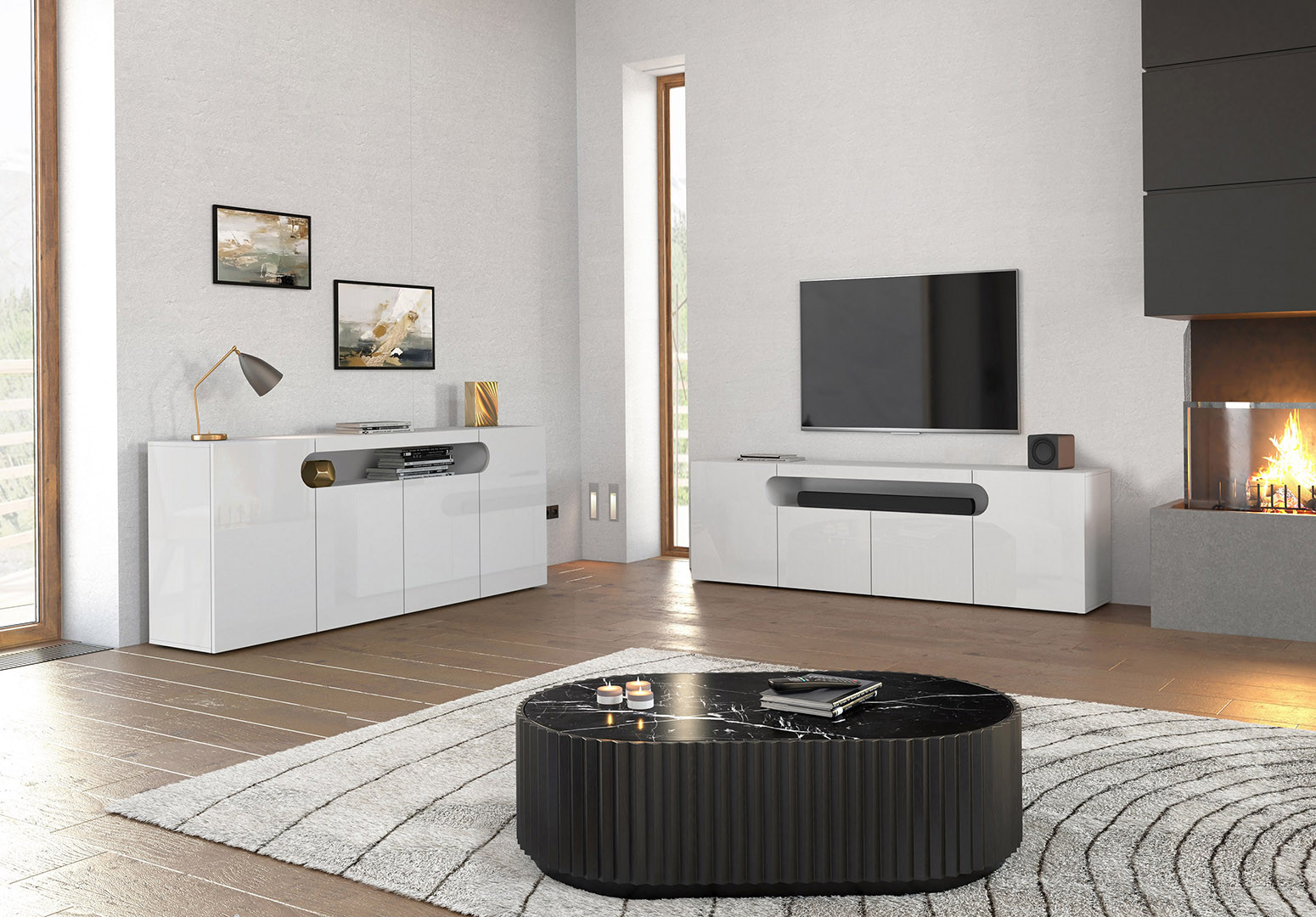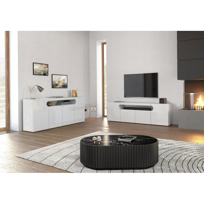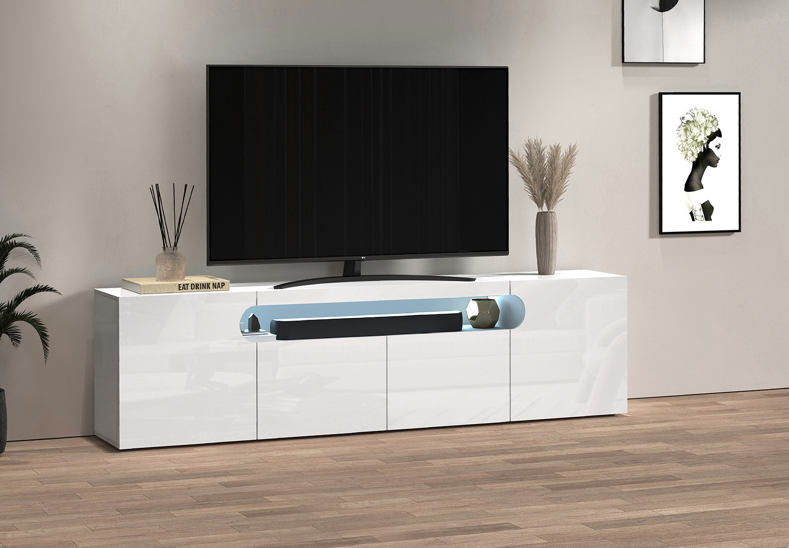 | Meuble TV moderne 4 portes blanc brillant Regina | | Longueur: 240 cm Hauteur: 61 cm Profondeur: 40 cm | En stock 48 à 72h | 459 € 99 | ||