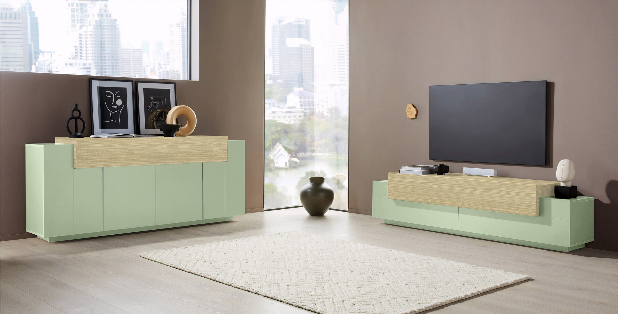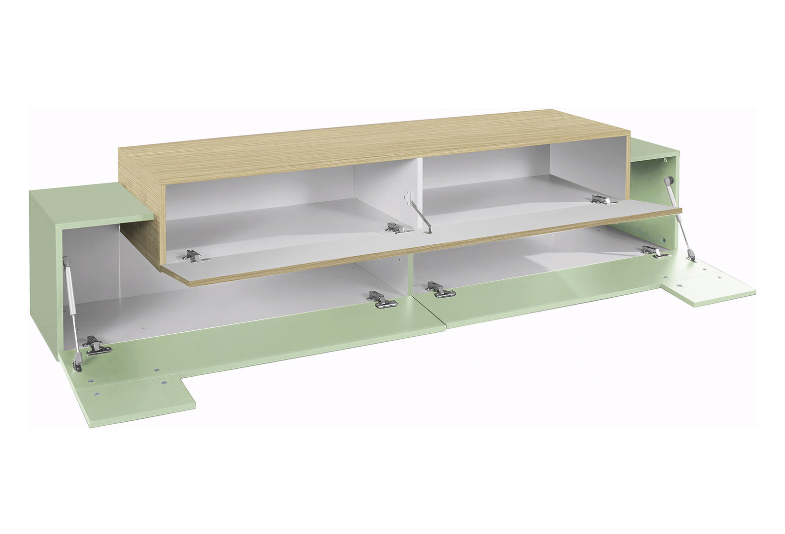Meuble TV moderne 240 cm vert sauge/chêne Corso | ![]() | Longueur: 240 cm Hauteur: 52 cm Profondeur: 45 cm | En stock 48 à 72h | 355 € 50 | ||