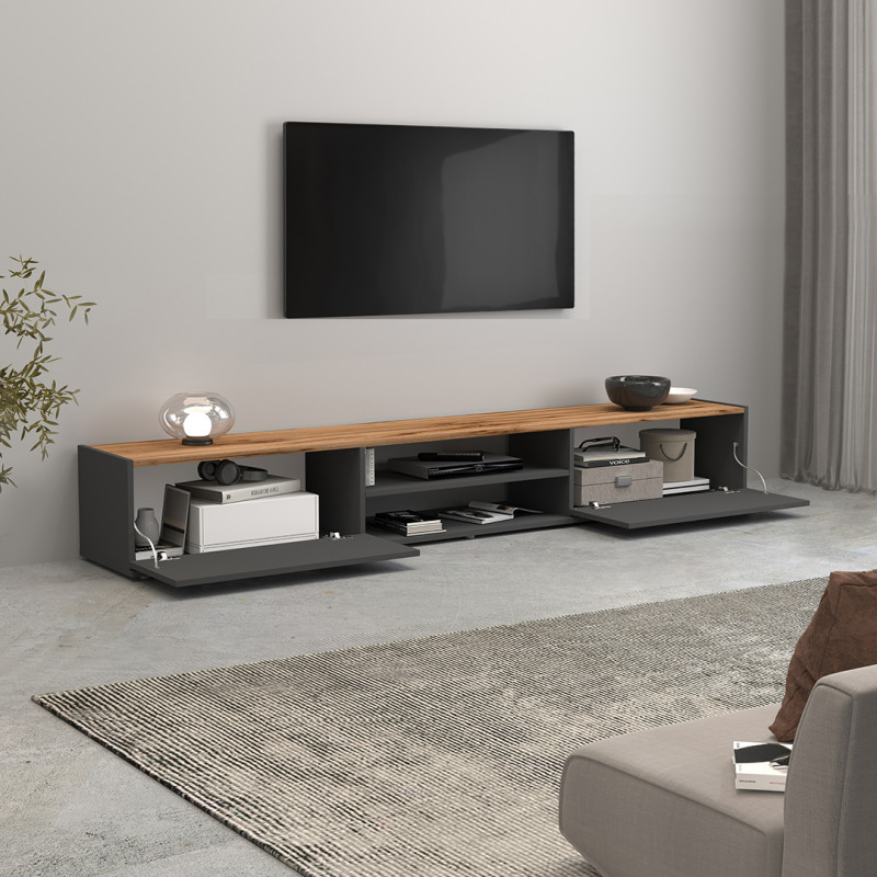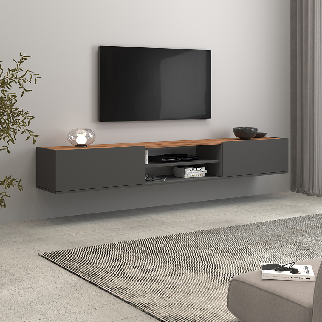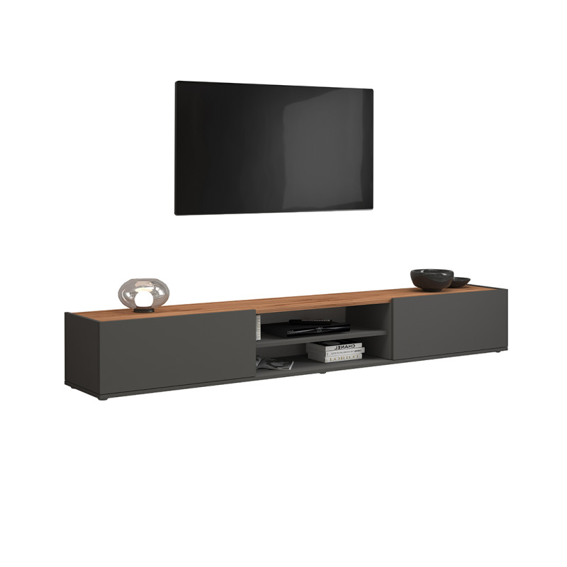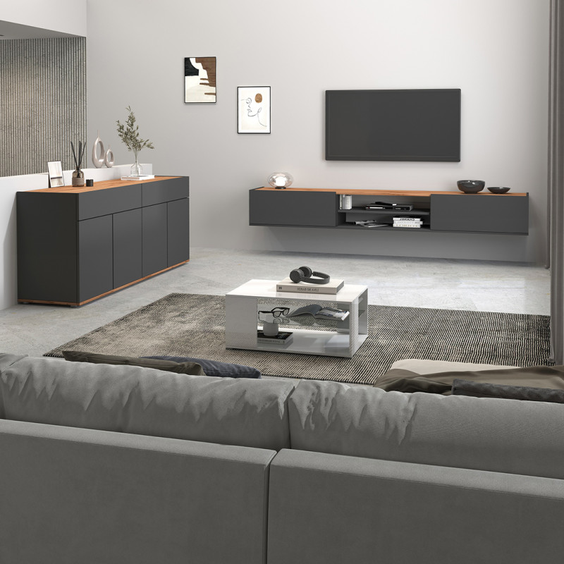 Imaginé par la marque italienne Deladeco, le meuble TV contemporain Grana s'impose comme une pièce maîtresse pour tout salon contemporain en quête d'élégance et de modernité. Avec ses 210 cm de longueur, il offre une présence visuelle forte tout en restant d'une sobriété remarquable grâce à sa finition anthracite mat associée aux nuances chaleureuses du chêne wotan. Ce mariage de teintes contraste avec subtilité, apportant à votre pièce de vie un caractère affirmé et raffiné, fidèle aux tendances du design d'intérieur actuel.