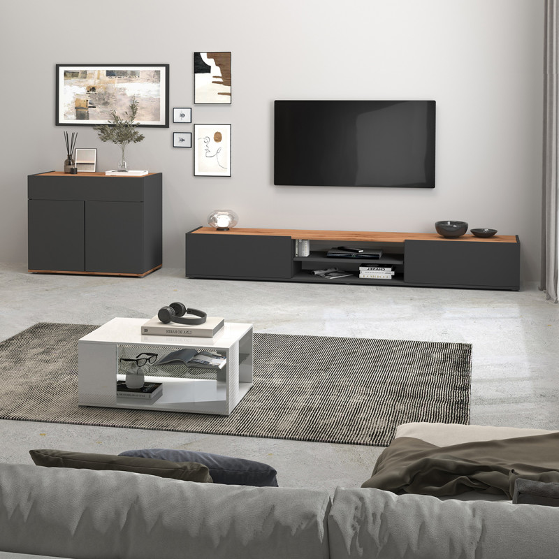 | Buffet/bahut moderne 200 cm anthracite mat/chêne wotan Grana | | Longueur: 200 cm Hauteur: 70 cm Profondeur: 35 cm | En stock 48 à 72h | 465 € 00 | ||